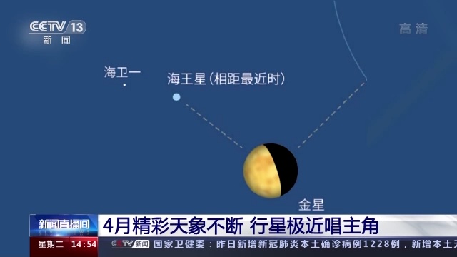 类似的行星极近天象也发生在4月28日,这天天亮前的1个小时左右,人们可以在东方低空看到金星和海王星以极近的距离相伴出现,由于金星和海王星两者亮度相差近7万倍,因此观测这个天象难度较大,推荐使用专业望远镜。据了解,在未来1000年中,除了有4次金星遮挡海王星以外,4月28日的这次金星相伴海王星,将是它们之间距离最近的一次。