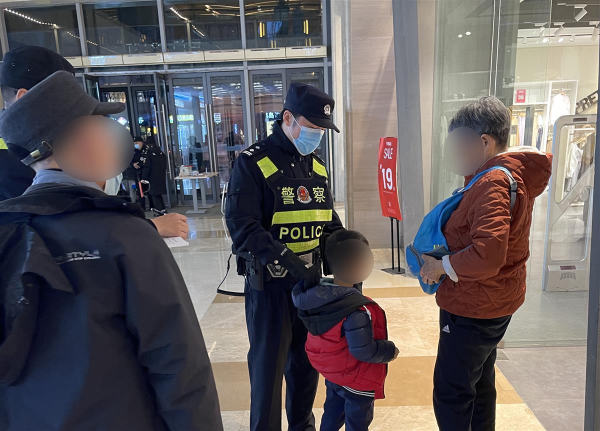 4岁男孩在商场与爷爷走散,接到报警后,武汉市江汉公安民警立即联合商场保安、物业接力寻找,最终通过商场监控发现男孩位置,成功将其找回。