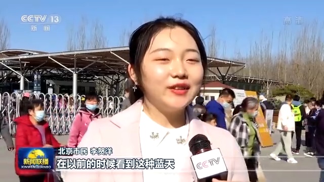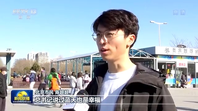 北京市民 陈超超:总书记说过蓝天也是幸福,我们现在每天出来散步锻炼,然后享受蓝天,享受新鲜的空气。
