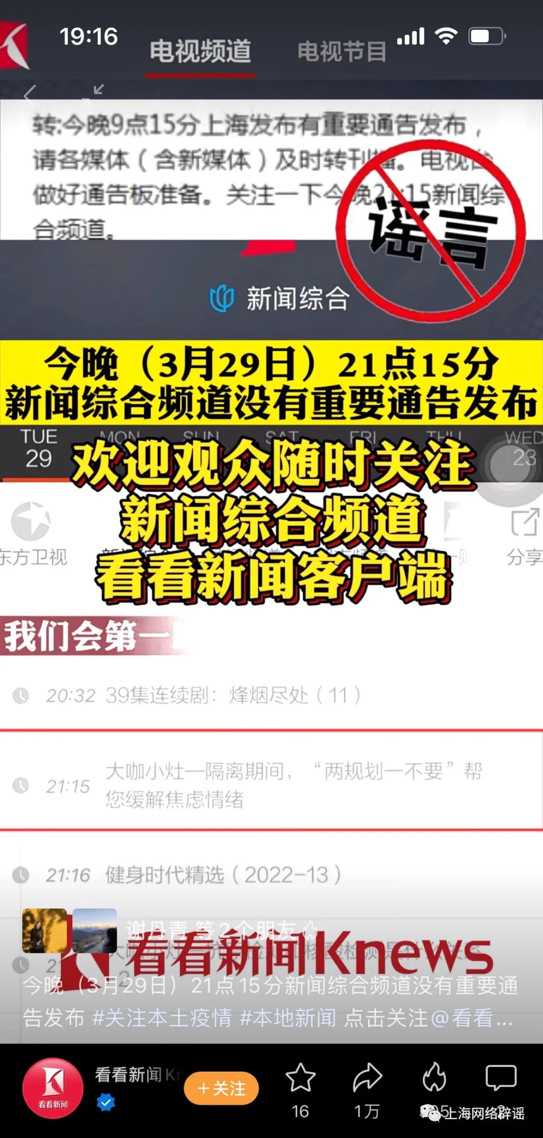 从3月29日下午起,一条“今晚9点15分上海发布有重要通告发布,请各媒体(含新媒体)及时转刊播。电视台做好通告板准备。关注一下今晚21:15新闻综合频道”的消息在圈群传播,不少市民纷纷猜测,究竟有什么重要通告。