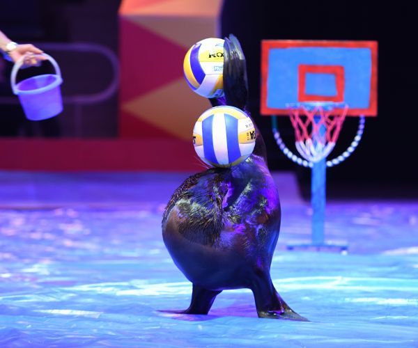 《环球大马戏嘉年华》是武汉杂技厅的品牌演出,也是不少家庭集体出动“二刷”“三刷”的返场剧目。现场高大威猛的骏马、聪明机灵的海狮、憨态可掬的黑熊、可爱调皮的小狗都是孩子们最爱看的节目,而浪漫唯美的《绸调》、体现军旅文化迷彩风的《钻圈》、融合力与美的《大跳板》、凌空飞跃的《双人吊子》、在空中进行360度翻转的《浪船飞人》则凭借精湛的杂技技艺和富有楚风汉韵的舞美,让成年观众叹为观止。此外,还有令人瞠目结舌的魔术表演,幽默逗趣的小丑串场互动,欢乐多多。