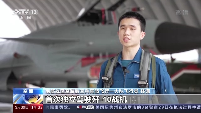 南部战区空军航空兵某旅飞行一大队飞行员 林谦:首次独立驾驶歼-10战机,我既激动又兴奋,经过前期扎实的地面准备,教官的悉心带飞,我对完成单飞任务有信心。