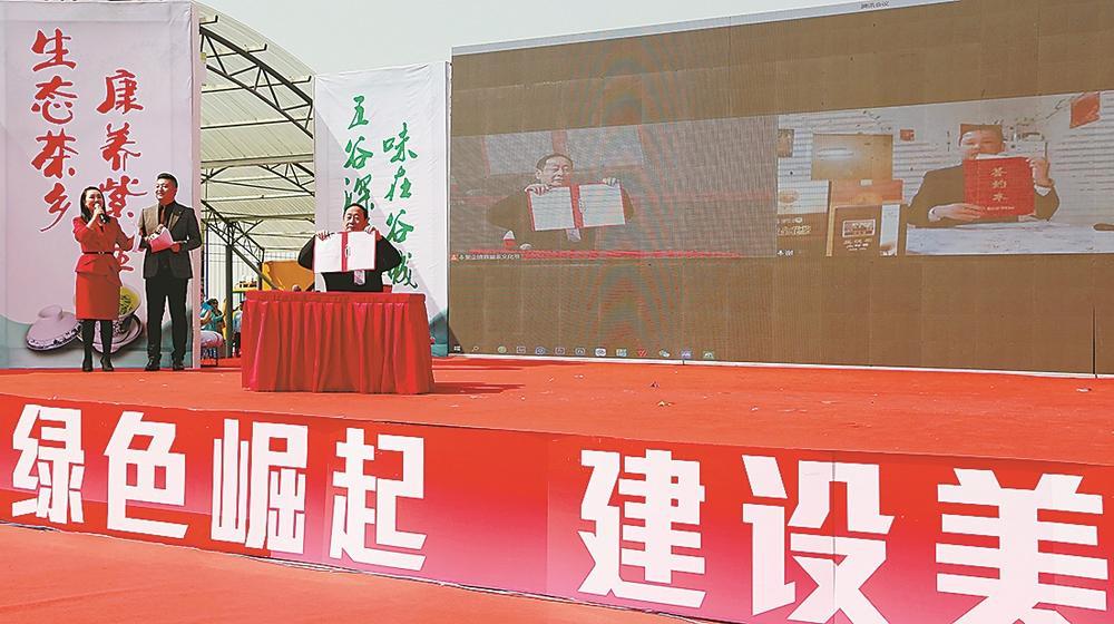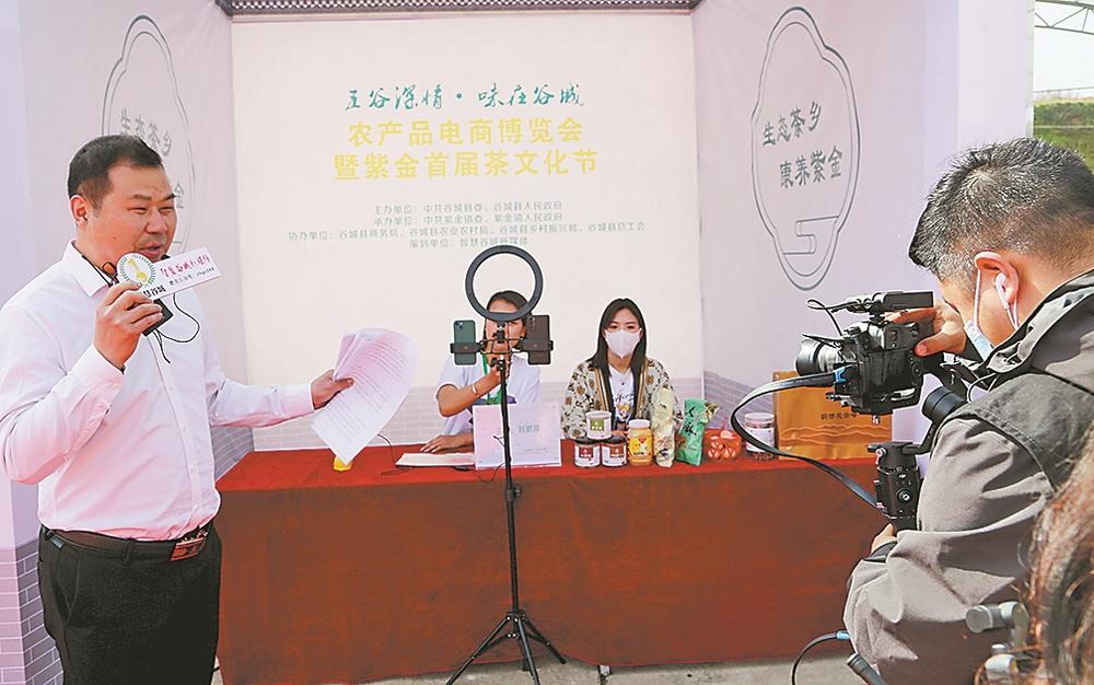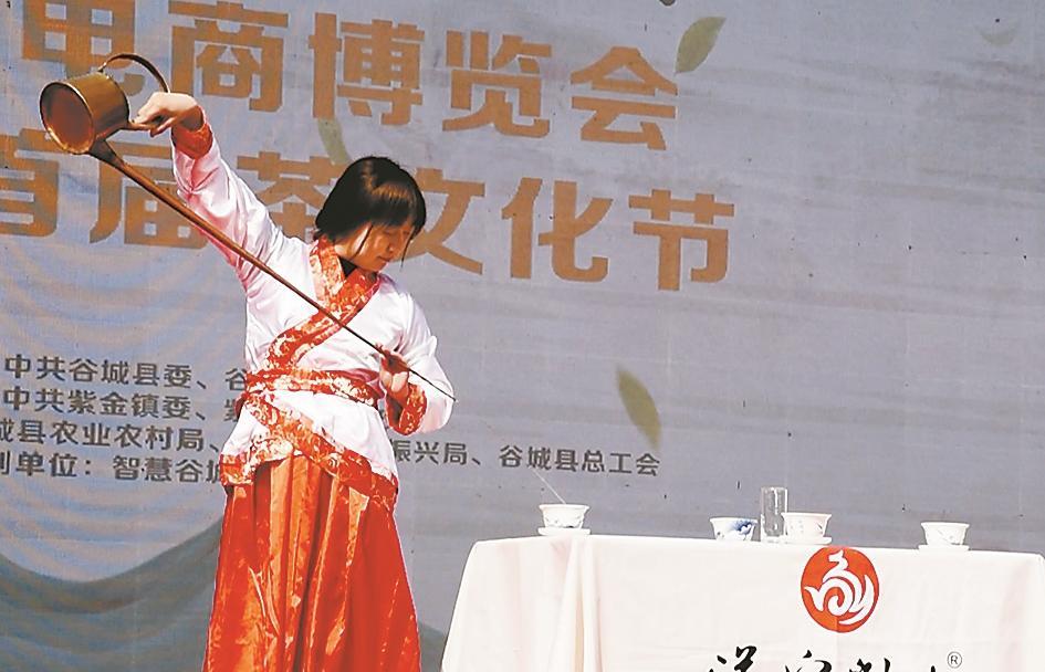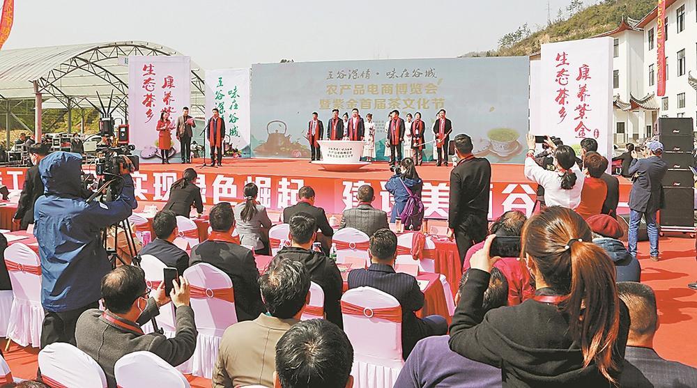 3月28日,由谷城县委、县政府主办,紫金镇党委、政府承办的“五谷深情·味在谷城”农产品电商博览会在花园村开幕。生态茶乡·紫金首届茶文化节系列活动同步开展,游客可以体验采茶、制茶、泡茶、品茶乐趣。