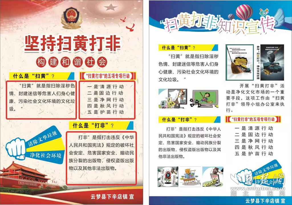 荆楚网(湖北日报网)讯(通讯员江来、黄颜开、徐凯)3月以来,下辛店镇综治办、宣传办、派出所和镇学区组成“扫黄打非”工作专班,开展清源护苗专项活动。