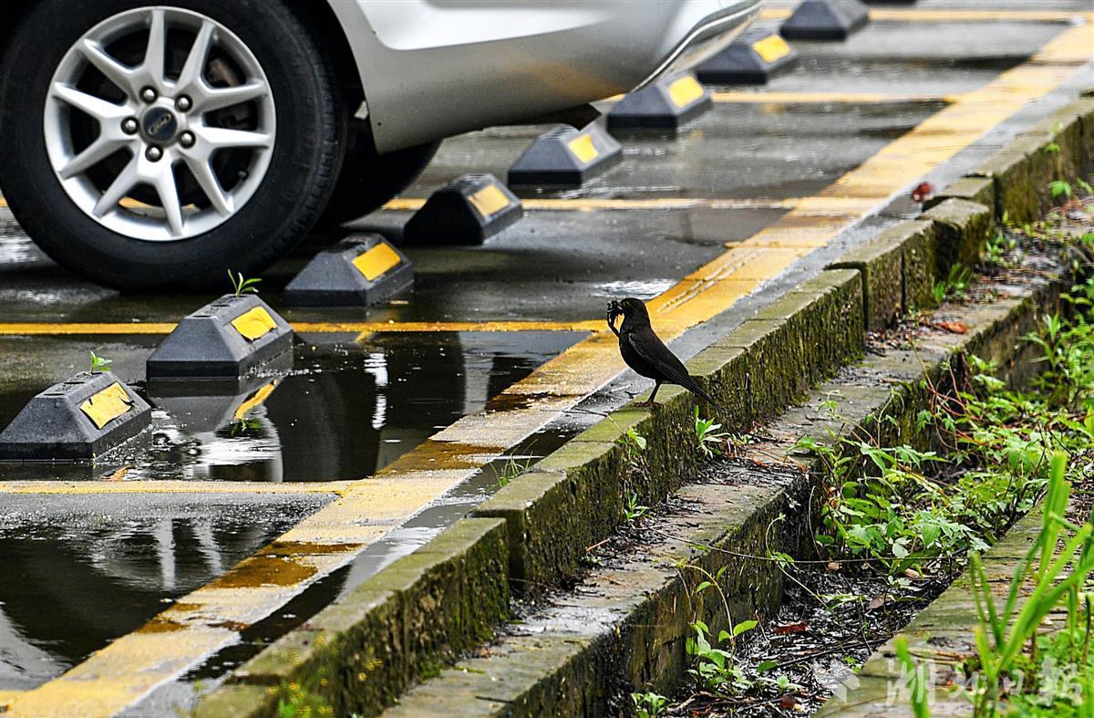 3月31日,在蒙蒙细雨中,汉口江滩的鸟翩翩起舞,或漫步在亲水平台上,与市民亲密接触。