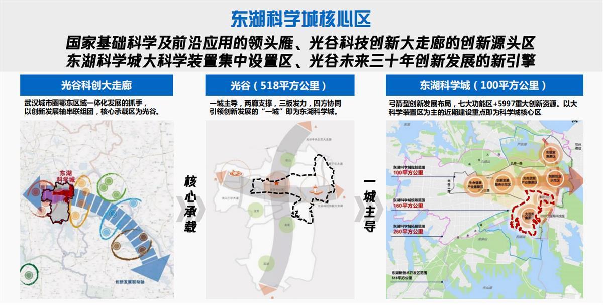 根据顶层规划,湖北东湖科学城核心区是国家基础科学及前沿应用的领头雁、光谷科技创新大走廊的创新源头区、东湖科学城大科学装置集中设置区、光谷未来三十年创新发展的新引擎,将塑造“湖光山色、蓝绿交织、开放共享”的城市形象,促进科技与生态交相辉映,人与自然和谐共生。