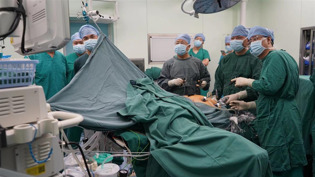 在高清腹腔镜下,罗建飞教授带领团队将小桐的“超级大胃”分成两个部分:较小的上部与小肠连接,作为食物进入的通道;较大的下部胃和十二指肠一起分泌消化液,并作为另外一个通道在小肠汇合,达到既转流又减少吸收的效果。