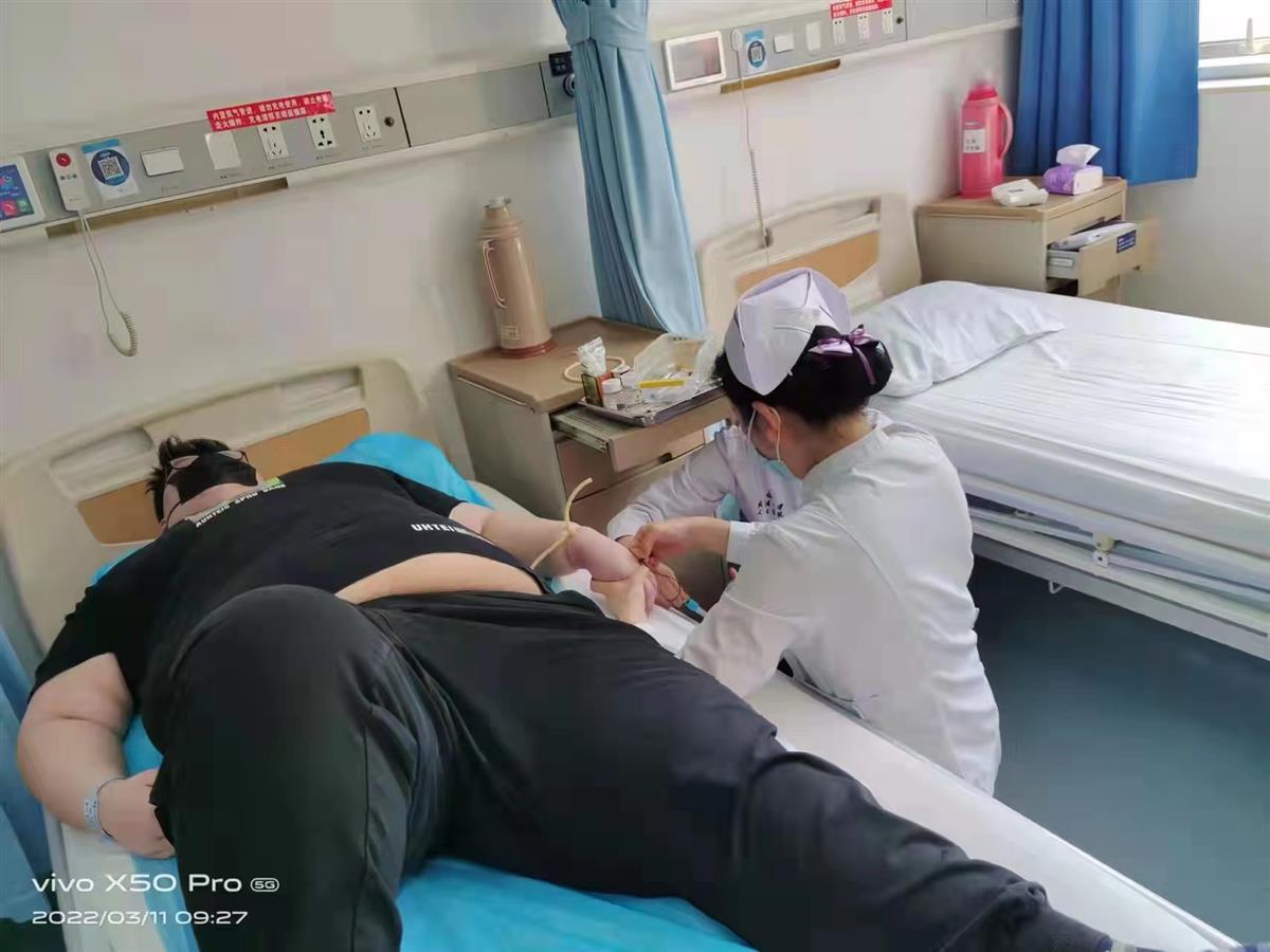 因为过度肥胖堵塞呼吸道,小桐经常睡觉时被憋醒,多年来只能趴着睡。更让家长担心的是,其双侧膝关节因不堪负重过度而损伤,站的时间稍微久一点就会出现手脚发麻的状态。入院前,小桐已依赖轮椅出行。