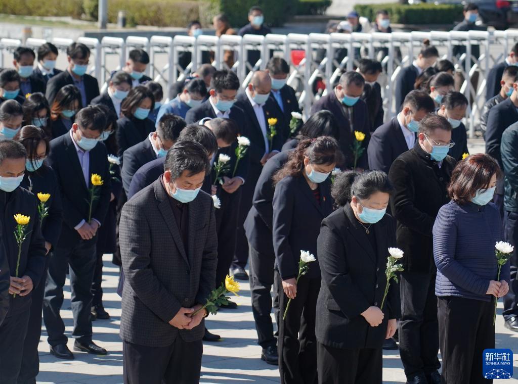 4月2日,社会各界代表在启动仪式上向在抗战中英勇牺牲的烈士默哀。