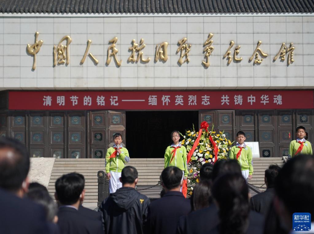 4月2日,社会各界代表在中国人民抗日战争纪念馆向抗战英烈献花。