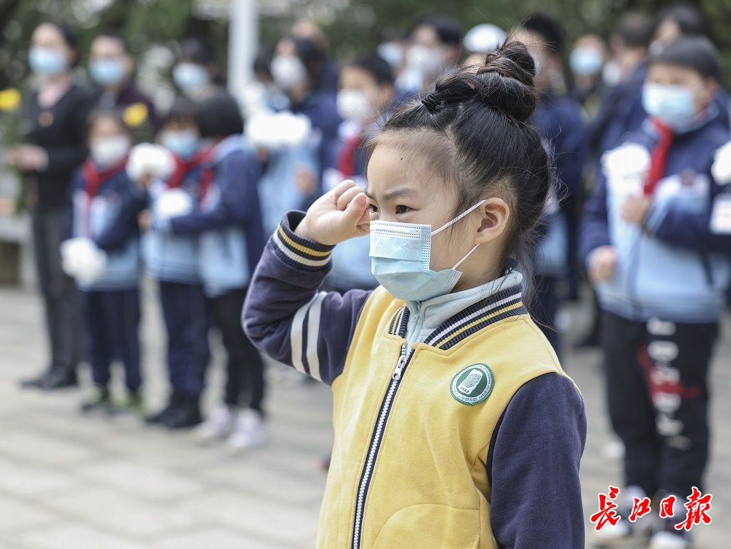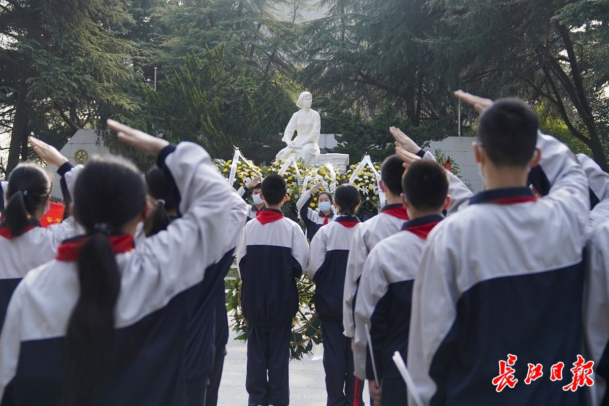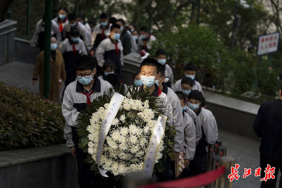 武汉市第二十一(警予)中学师生向革命先烈致敬。记者彭年 摄