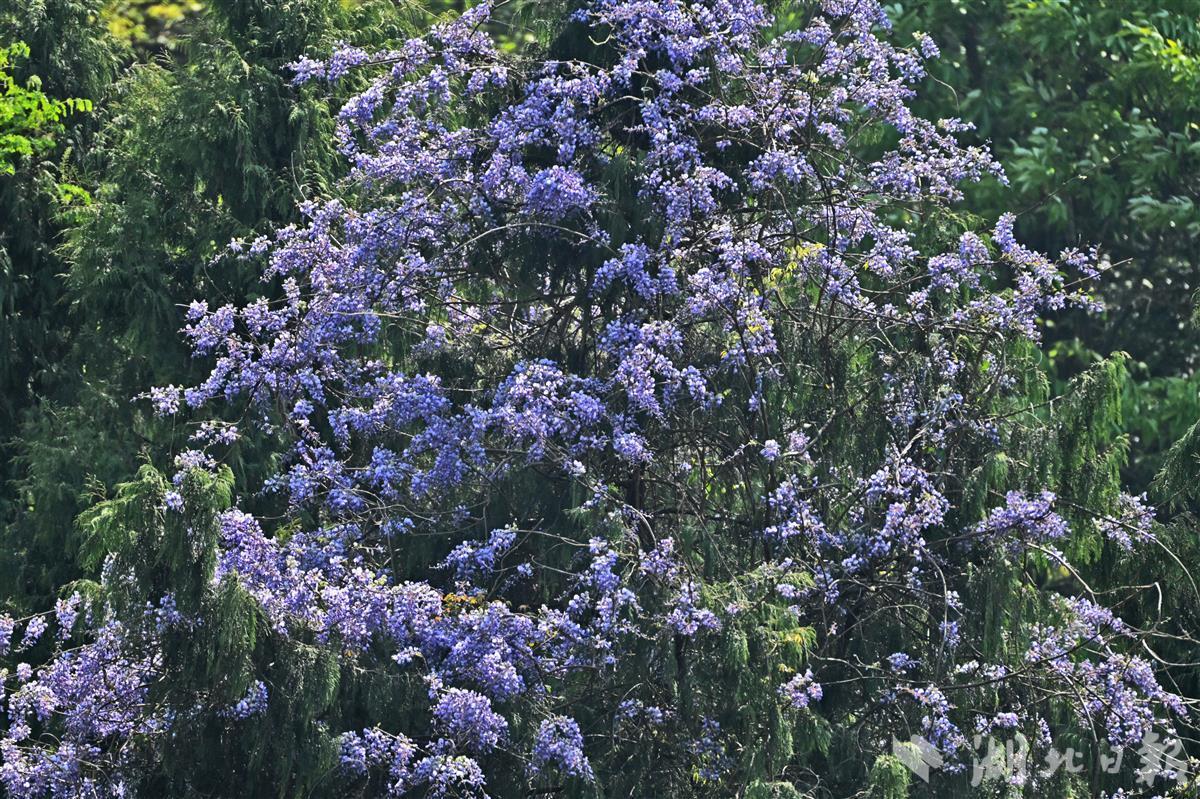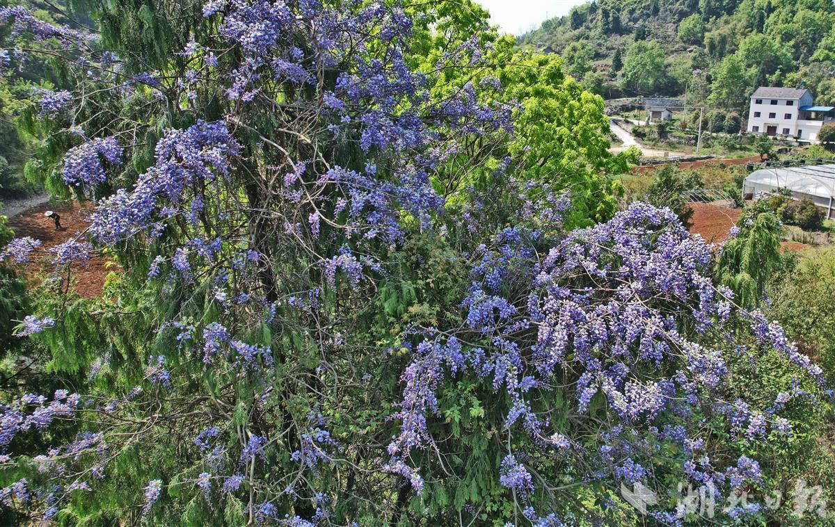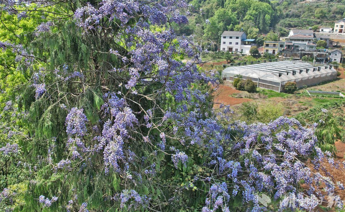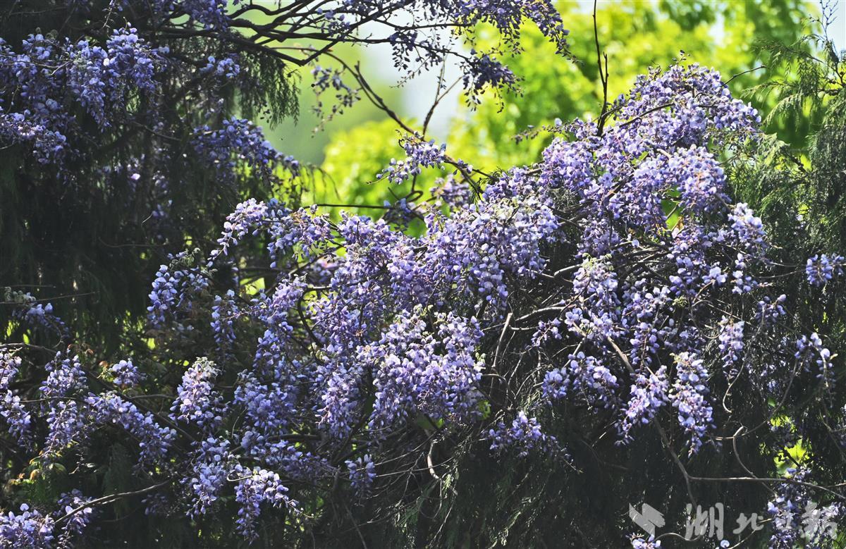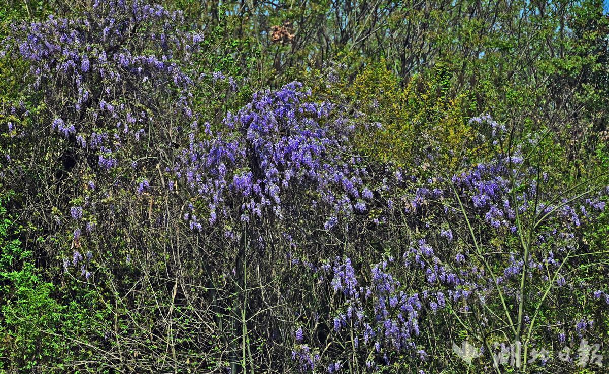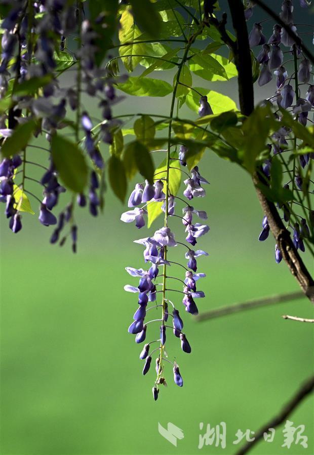 “紫藤挂云木,花蔓宜阳春”。4月3日,长江宜昌段两岸山坡上的连片野生紫藤花盛开如锦,一串串一株株在悬崖上,在道路旁,如紫色瀑布般垂落,随着清明小长假的到来,长江岸边如梦似幻的紫色浪漫景致吸引了不少市民前来踏春游玩,享受长江大保护后岸线修复给市民带来的生态福利。(湖北日报全媒记者 刘曙松 摄)