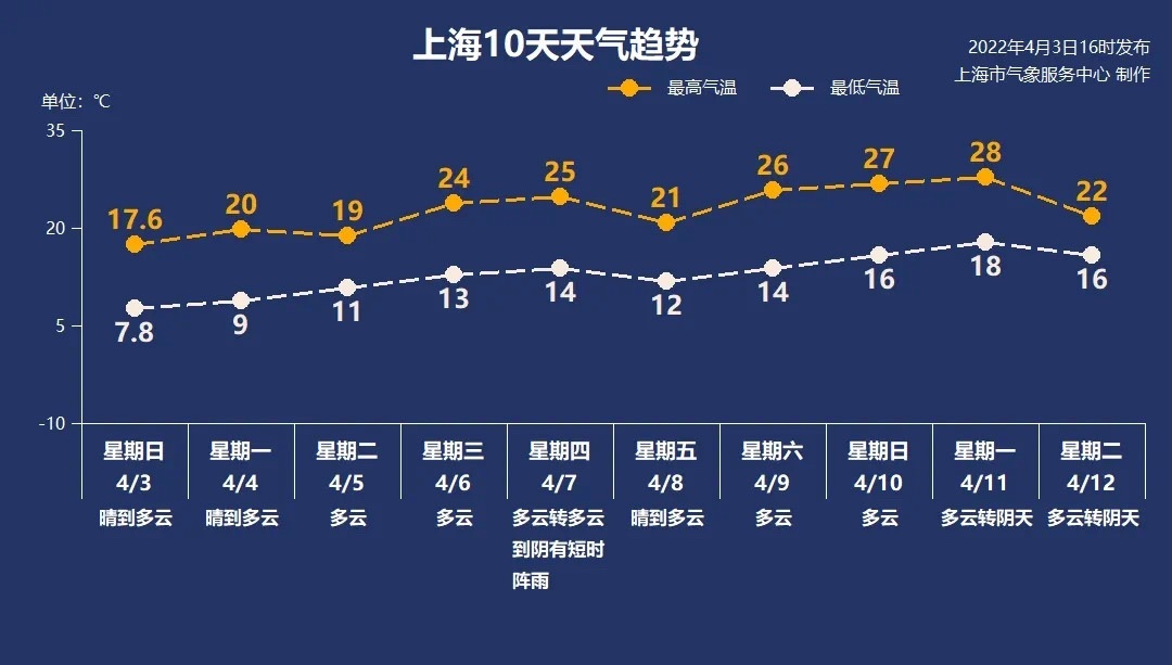 东方网记者包永婷4月3日报道:今天迎来了清明小长假第一天,全国大部地区以晴到多云天气开场。上海也不例外,受地面高气压控制,今天晴空万里,中心城区最高气温达17.6℃。