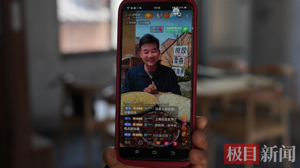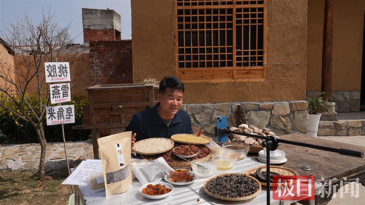 上午9时,直播开始。院子里的两张小桌上摆着花菇、桃胶、木耳等,林俊面对镜头,驾轻就熟开播。“随州花菇,菌中之星,香菇之王”“原生态桃胶,美容养颜佳品,来自我的家乡湖北随州”……