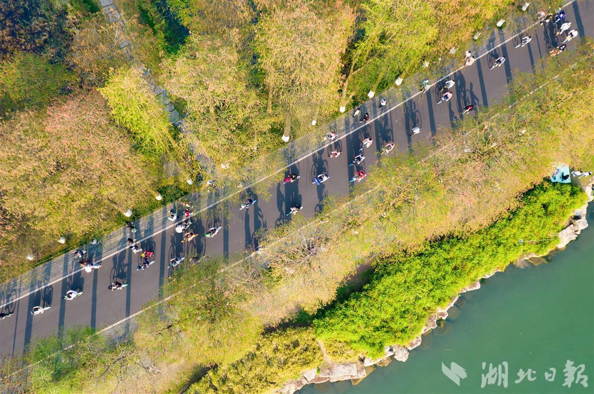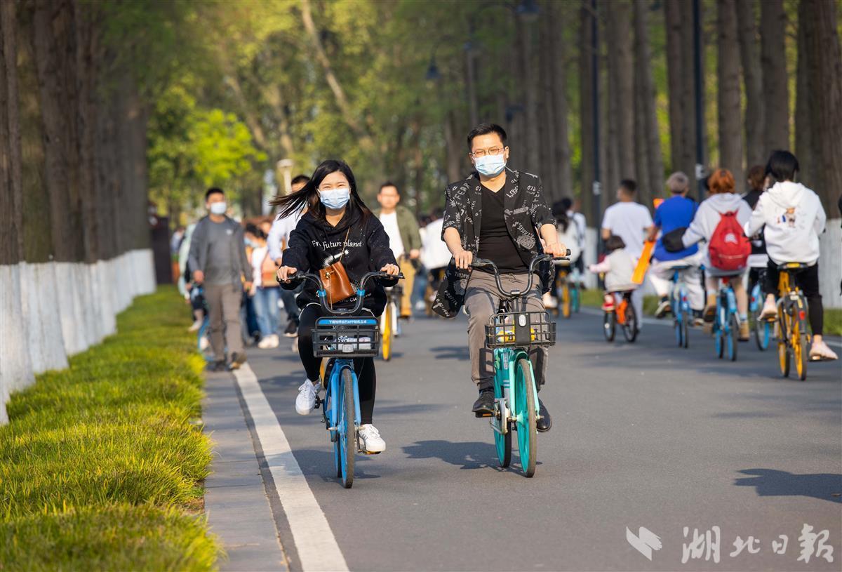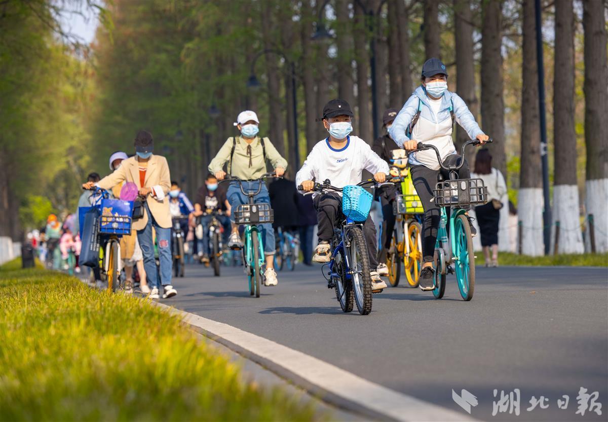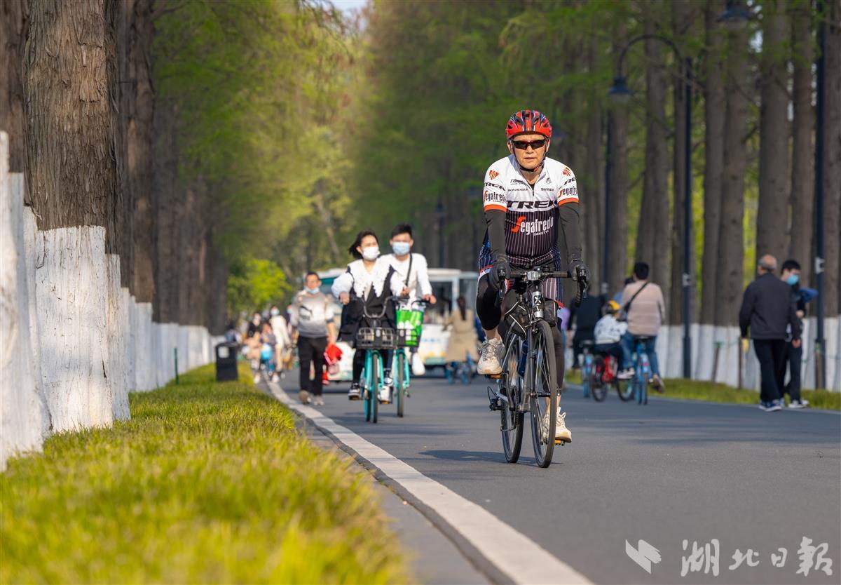 4月3日,清明小长假首日,武汉市东湖绿道游人如织,不少市民用骑行的方式春游踏青,享受惬意的春日时光。(湖北日报全媒记者 薛婷 摄)