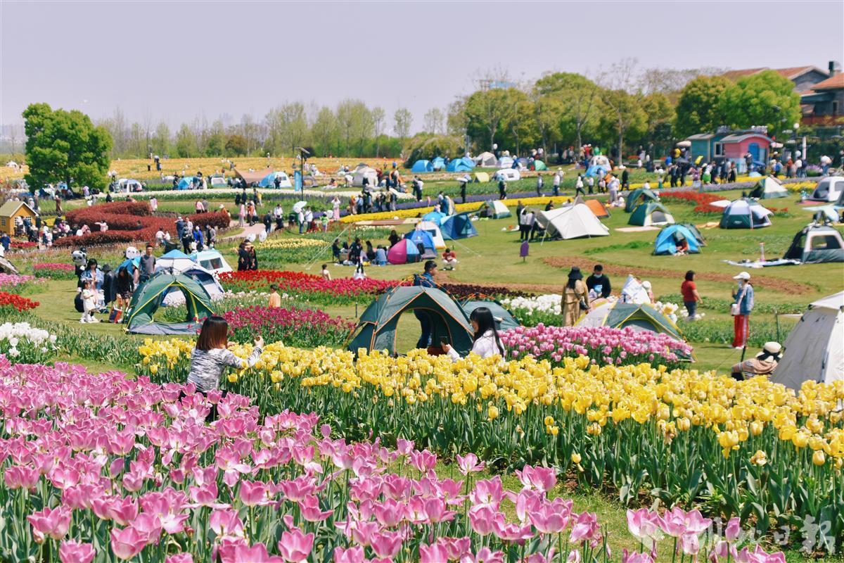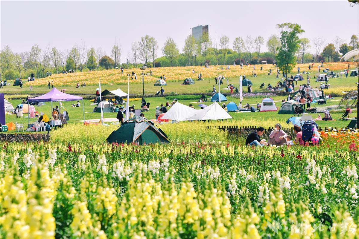 人间最美四月天,春风轻拂,春水微漾,新绿染遍荆楚大地,清明假期正好适合踏青游玩。假期首日的上午,武汉花博汇就迎来不少游客,很多游客都选择自驾前来。武昌何女士说:“看到花博汇被评为湖北赏花‘网红打卡地’,所以我就约着男朋友一起出游,一定要多拍一些美照发朋友圈!”除了打卡拍照,不少家长带着孩子来到花博汇,在四季花海的草坪上搭起了帐篷,“花博汇是踏青出游的好去处,景色美,孩子还能认识不少花卉。另外,景区里还有不少游乐设施,孩子也很喜欢。”家住光谷的鲁先生说。