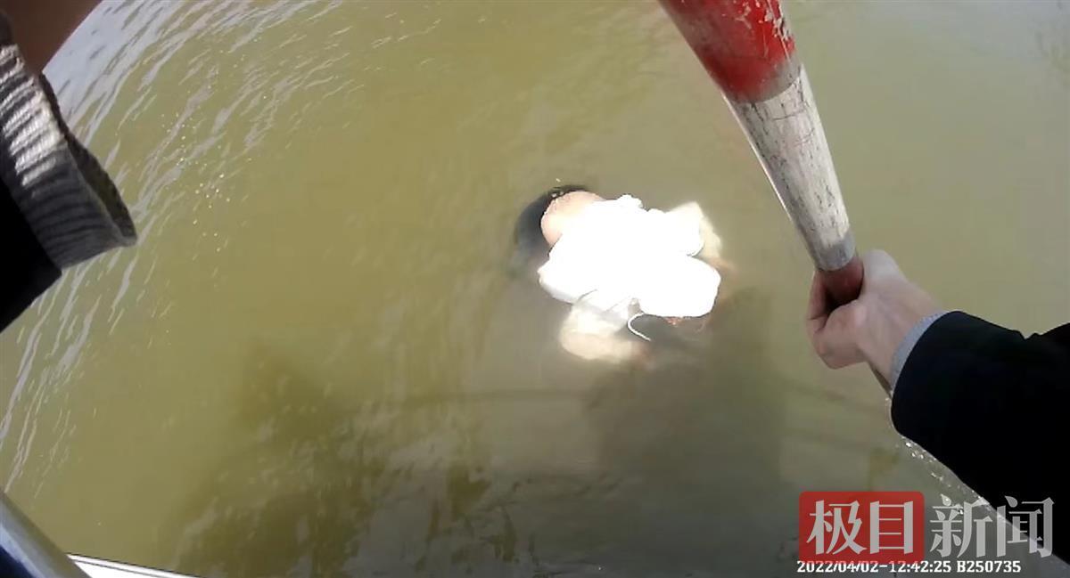 到达现场后,见该女子仍然情绪激动,李博立即备好救援工具在桥下守候。12时40分,女子突然跳下桥面,落入汉江中。民警立即展开救援,李博用撑杆勾住该女子衣物,陈凯等人抓住该女子胳膊,又在船舷上架起扶梯,合力将其拉入船舱。