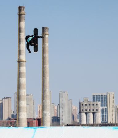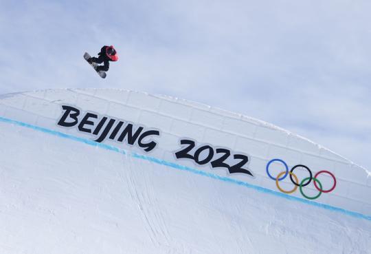 2月15日,中国选手苏翊鸣在北京冬奥会单板滑雪男子大跳台决赛中。新华社记者兰红光摄