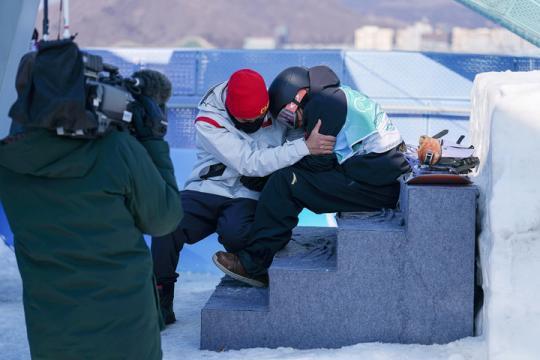 苏翊鸣赢得北京冬奥会单板滑雪大跳台金牌后,一头扎在教练怀中哭泣的一幕,让人记住了那位头戴红色针织帽、身穿中国队队服的日本教练佐藤康弘。从北京冬奥会回国一个多月后,佐藤在日本北部的安比高原滑雪场接受了新华社记者的专访,回顾了自己在不到4年时间内帮助苏翊鸣登上冬奥最高领奖台的传奇之旅,也分享了两人生活中的点点滴滴。