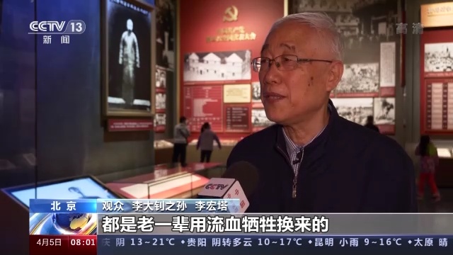 观众 李大钊之孙 李宏塔:咱们今天的幸福生活都是老一辈用流血牺牲换来的,他们的愿望(包括)民族解放、人民幸福,到今天都已经得到了实现。但我们还要继续再往前走,还有很多事、很多任务都要做,都要继续努力,把各方面的工作做好。