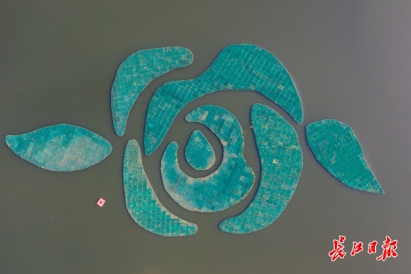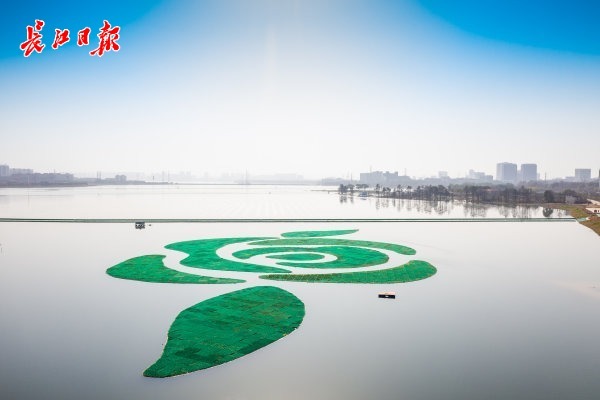 春日下的汤逊湖湖面,“画面”生动而丰富,蓝色的涌浪机充满“魔性”欢乐转圈圈,湖面上若隐若现的膜生物反应组件,还有一朵巨大绿色“花朵”。它们的共同点是,净化水质、促进水体内的水生植物、浮游动物自然生长,恢复湖泊生态净化功能。