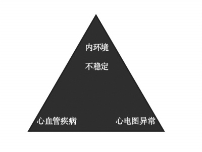 这个黑三角下边的一角是有过心血管疾病的,比如心梗、心肌病、心衰;下边另一角是做心电图有过异常的;顶点是体内的内环境不稳定,植物神经不稳定,交感神经兴奋,电解质紊乱等。