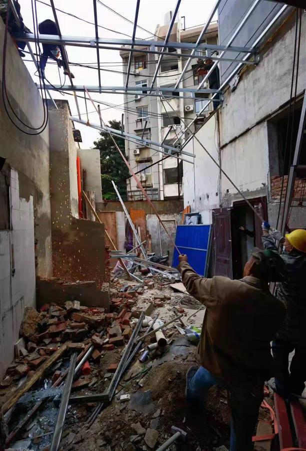 经现场勘测,该处复建违建面积共计80平方米,建成后,会完全堵塞公共消防通道,不仅影响行人、车辆通行,造成的消防安全隐患也不容小觑。因距上次违建已经过去3年,当事人便抱着侥幸心理重新复建,执法人员当即责令其停止施工,加大对当事人宣传教育力度。执法中心随即组织人员开展“即查即拆”拆违工作。