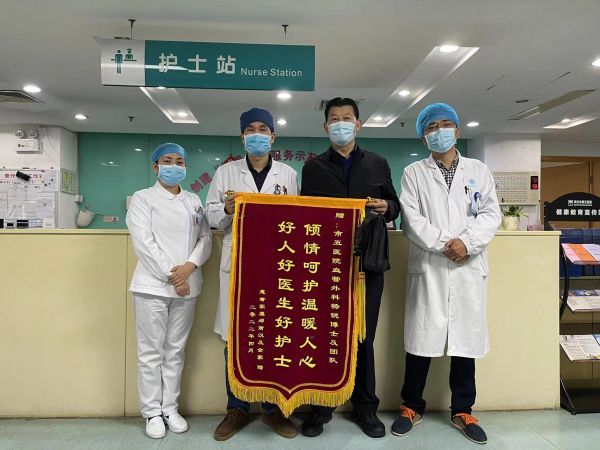 刘奶奶家属为杨锐医生团队送上锦旗。记者武叶 通讯员杨诗雨 摄
