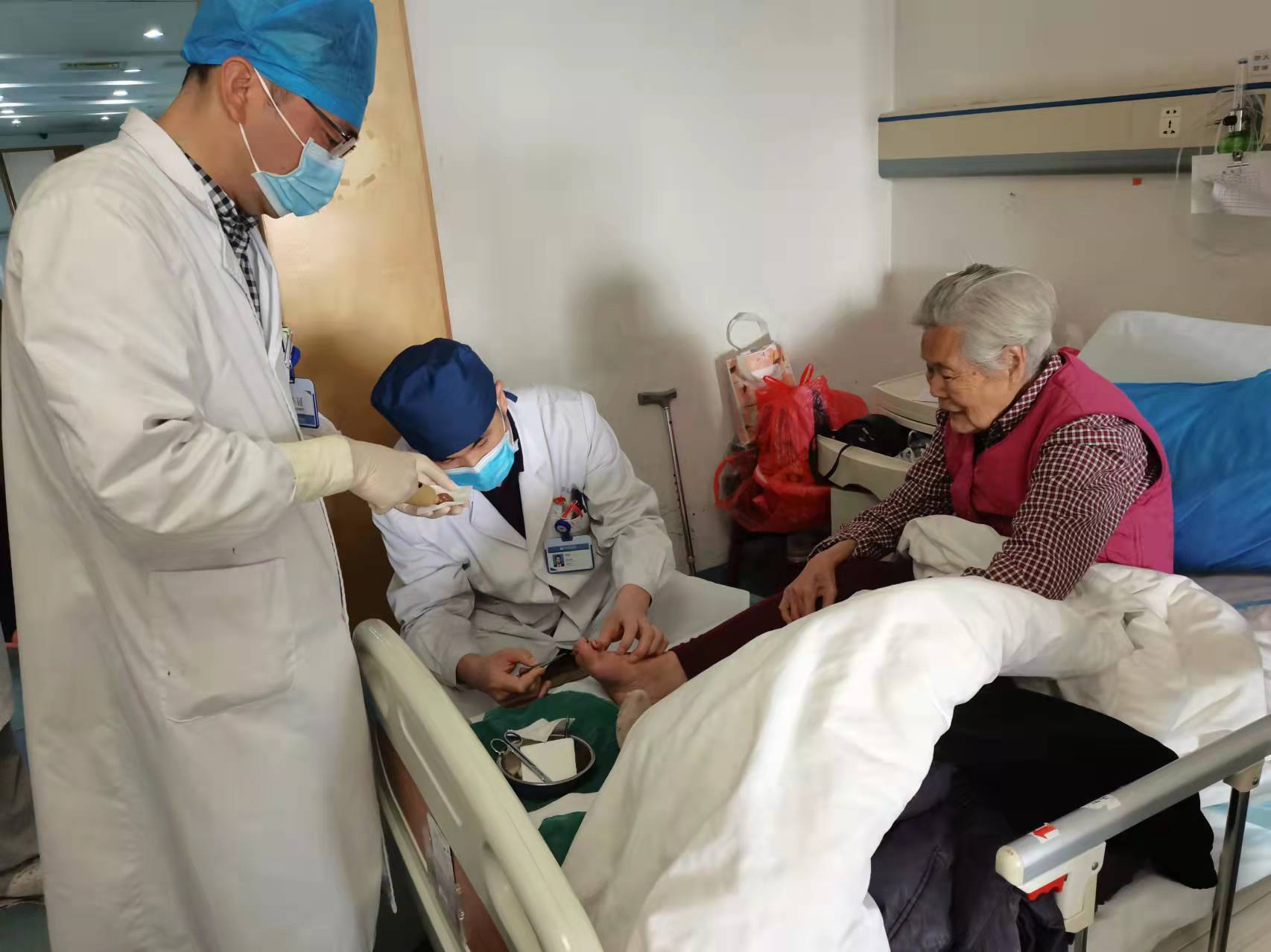 医生为刘奶奶进行伤口清创。记者武叶 通讯员杨诗雨 摄