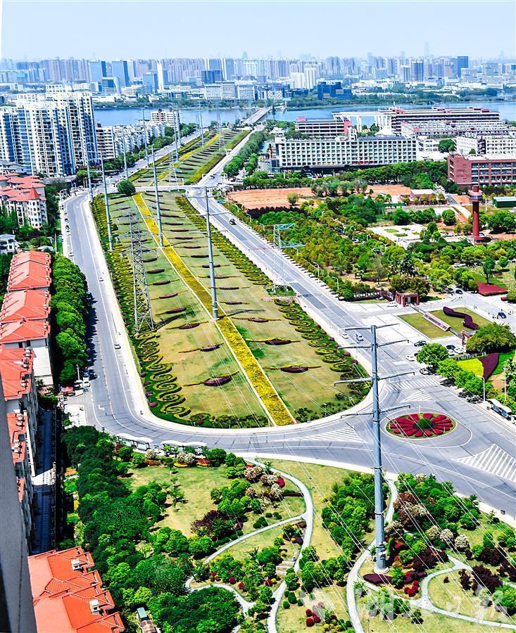 这条大道很霸气,是把自然的山坡修筑在马路中间,作为车道的绿化带,绿化带起点处设有巨型龙头雕塑,“龙身”依山平缓而上绵延2公里长。山坡上有一条供游人观光的步行道,坡上植被丰富,植物被园林工人巧手修剪,或圆或方,造型多样,与周边及汤逊湖湿地生态公园自成一体,是武汉市又一个宜居新城。(湖北日报全媒记者 朱熙勇 摄)
