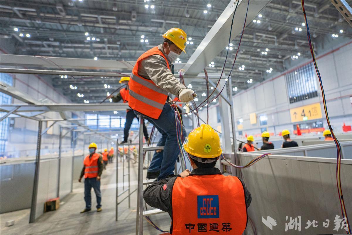 湖北日报全媒记者获悉,在这场大会战中,很多人曾参与过武汉火神山、雷神山医院建设。他们从武汉、杭州等地赶来的和中建三局在沪骨干汇合。其中不少建设者们刚刚在上海崇明复兴馆集中收治点鏖战86小时,来不及过多休息又连夜转战上海国家会展中心方舱医院,开启又一轮的战斗冲锋。