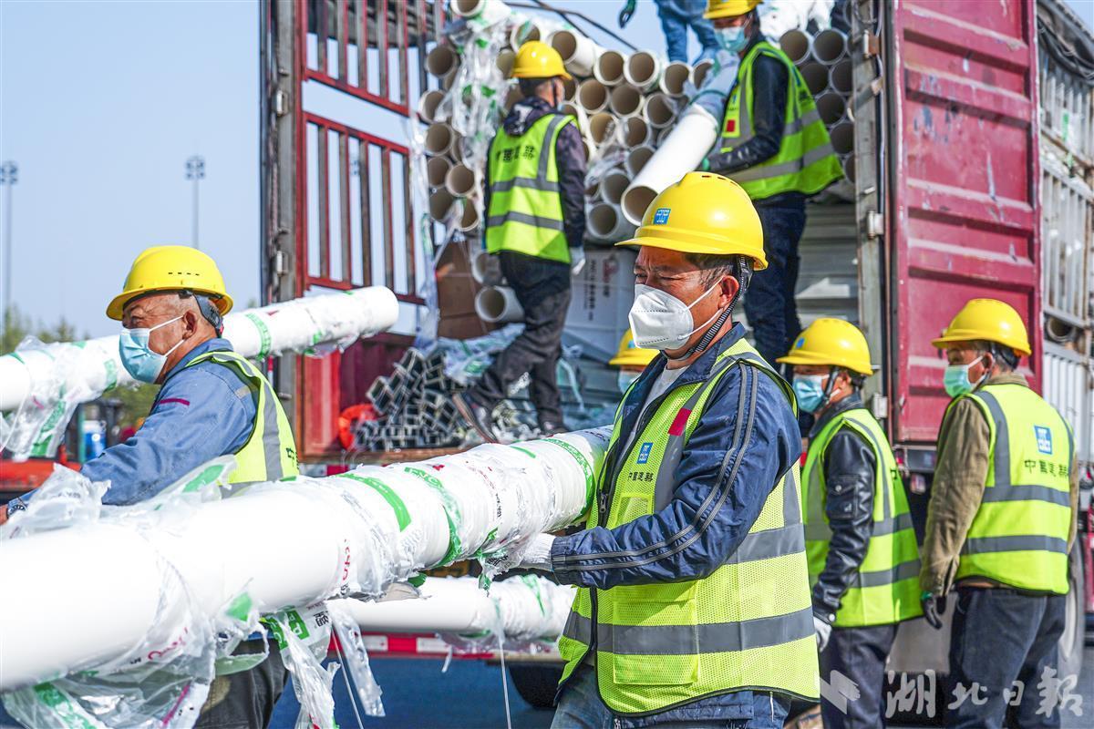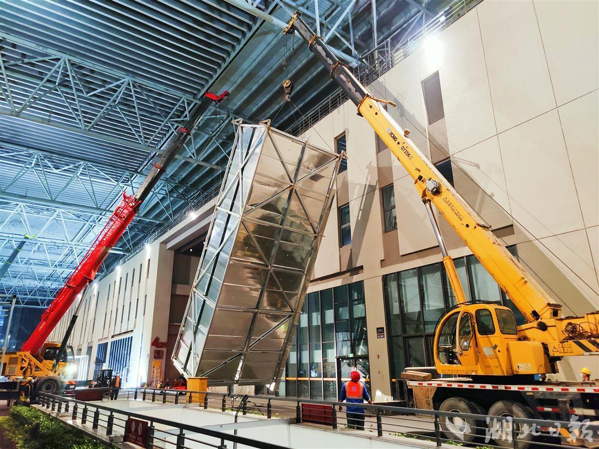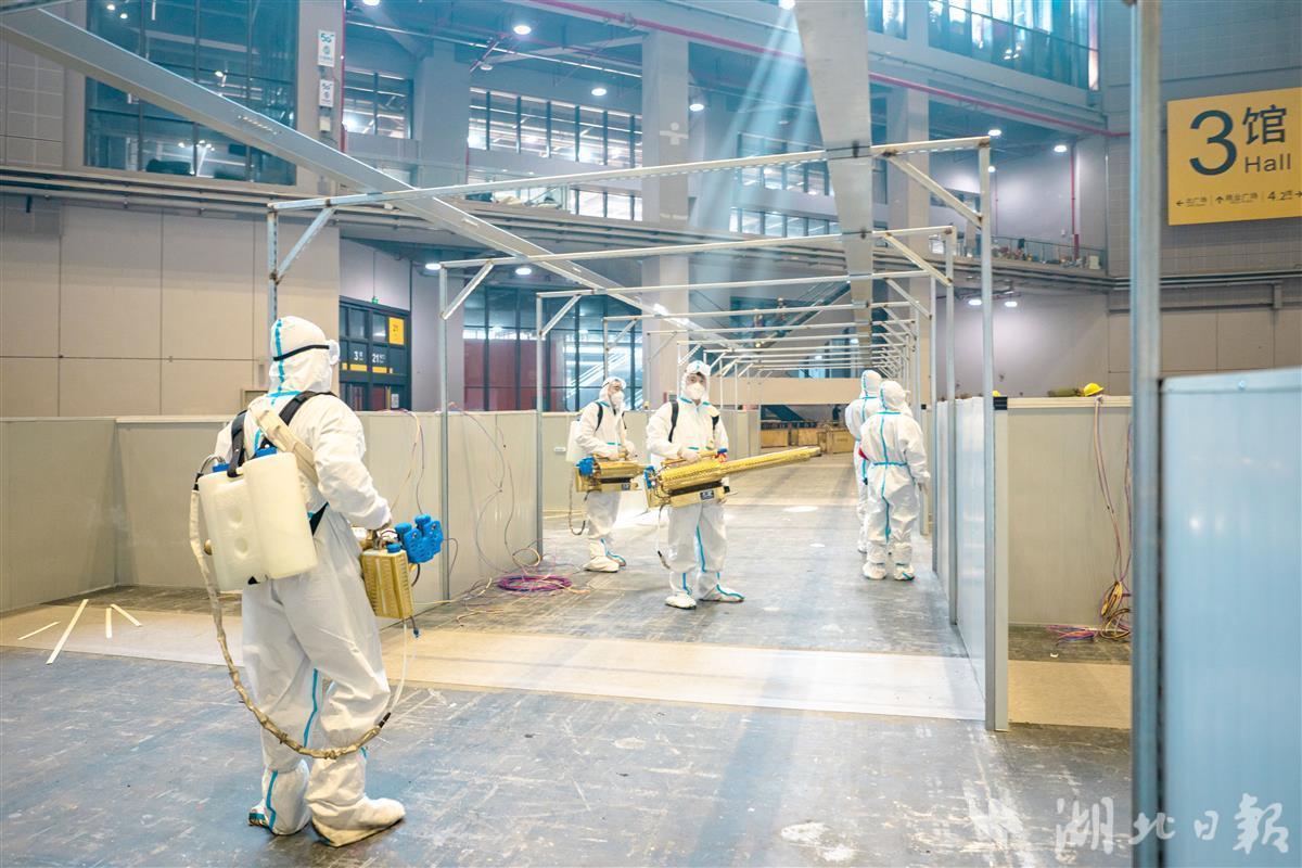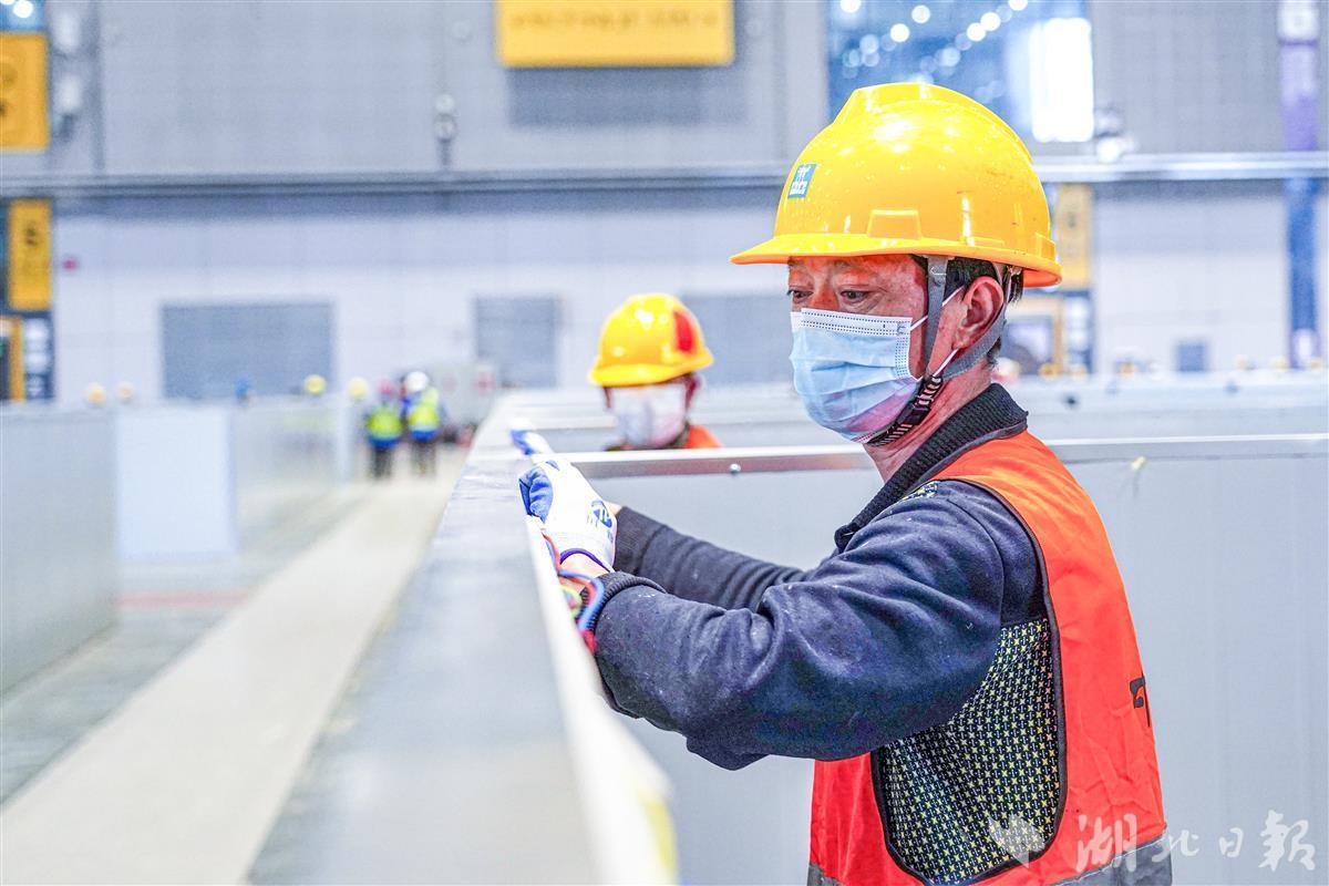 4日晚,指挥部通宵为350余辆货车办理通行证;5日10点,首批病房区隔断顺利进场;5日13:00,60台大型机械陆续进场;5日晚,1000名工人进场,隔断施工大面积展开;6日上午,2.6万平方米场馆,大部分隔断施工完毕,现场一夜“换装”……