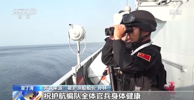 被护渔船船长 孙林:谢谢!祝护航编队全体官兵身体健康。并提前预祝你们海军节快乐!