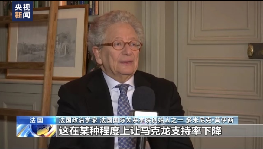 法国政治学家 法国国际关系学院创始人之一 多米尼克•莫伊西:很多人都认为这场冲突对现任总统马克龙有利,在冲突初始阶段确实是这样,但是接下来俄乌冲突(导致物价上涨),让法国人购买力成了问题,这在某种程度上让马克龙支持率下降。