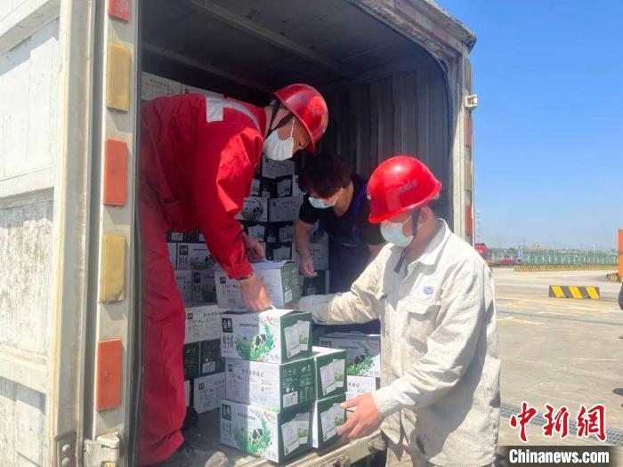 连续3天,一艘艘承载着货物的集装箱货船在安吉上港码头缓缓离岸。其中有几个“特殊”的箱子,装着各类新鲜蔬菜、鸡蛋和肉类食品。