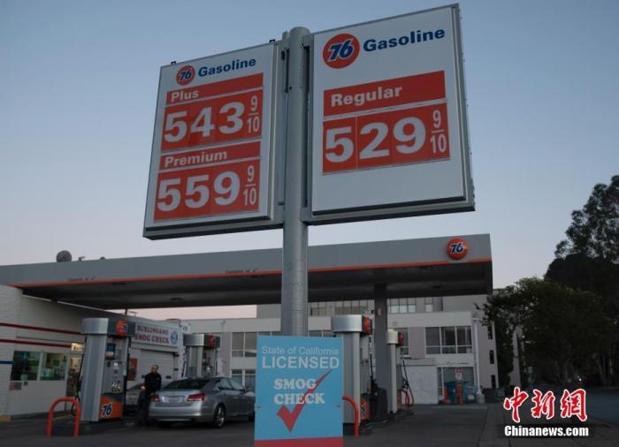 2022年3月,车主在美国加州圣马特奥县为车辆加油。中新社记者 刘关关 摄