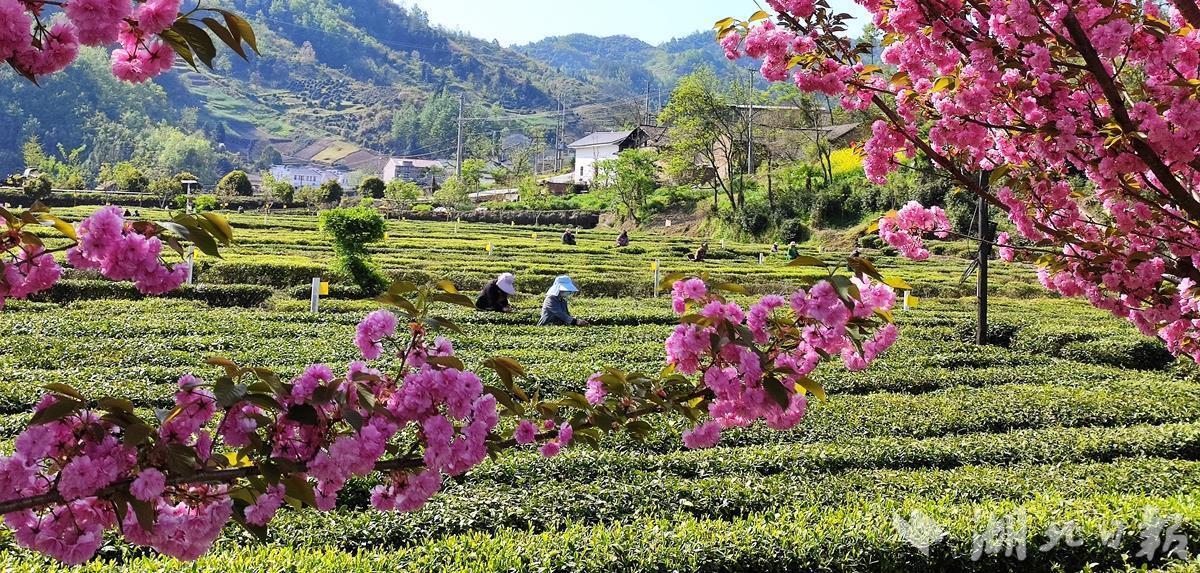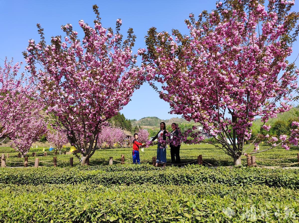 当下,樱花映红了茶园,映红了蓝天,映红了笑脸。吸引了众多游客前来品茶、采摘、赏花、拍照、拍抖音,一个个赞不绝口。