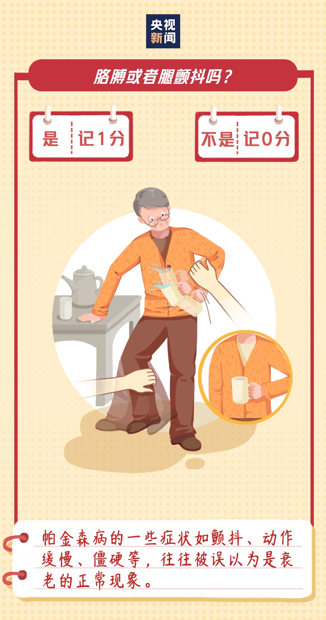 帕金森病可见于从青少年到老年的各个年龄段,对健康的危害不容小觑。想知道帕金森病有哪些症状?如何预防和治疗?戳图,一个小测试告诉你!