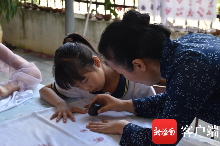 “听说是送给援沪护士姐姐的礼物,孩子们都很积极。”活动发起人——凤凰希望书屋创始人时一文接触植物拓染已经一年多了,近期听说万宁一批医护人员支援上海抗击新冠肺炎疫情,便萌生了带着孩子们一起为护士们制作丝巾的想法。