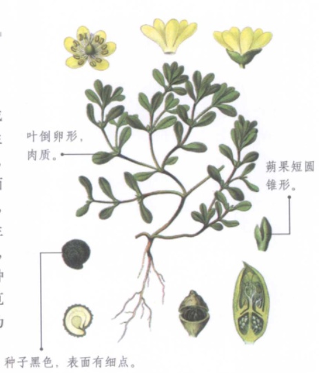 又名马蛇子菜,一年生肉质草本植物,贴着地面匍匐生长,茎呈淡红色,叶片圆润多汁。