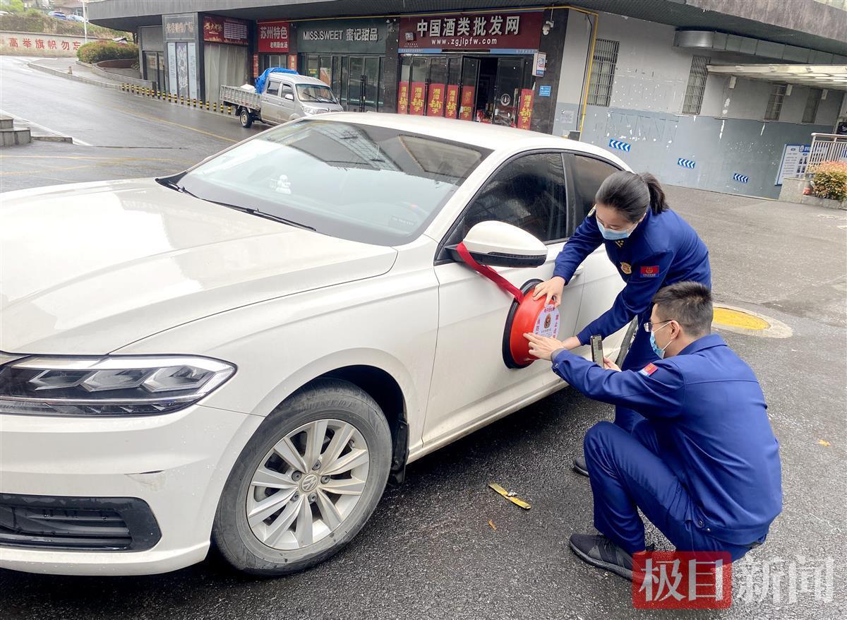 恩施消防给违法车辆贴上“消防脸盆”