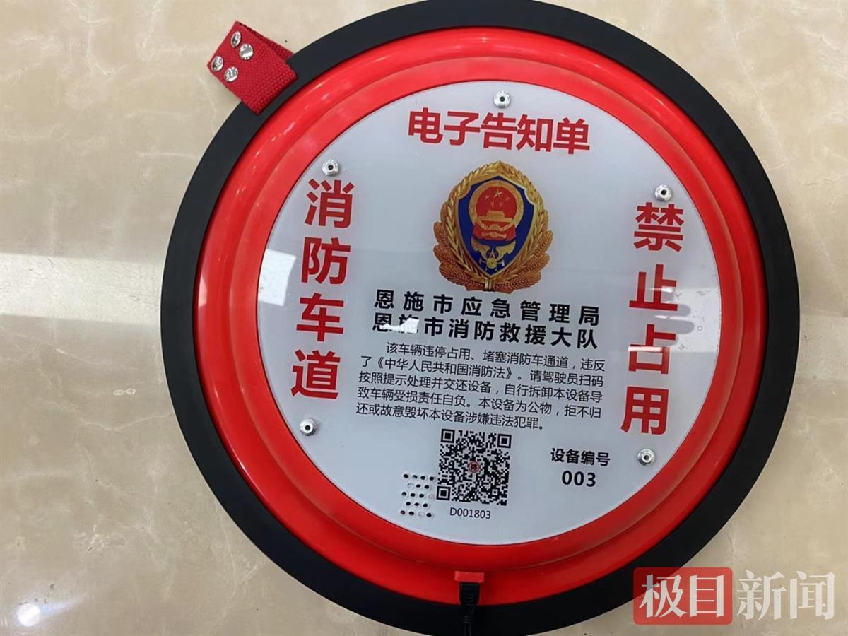 无独有偶。在恩施市,当地消防部门也启用了“消防脸盆”电子告知单。恩施市消防救援大队防火监督员李伦介绍,此设备专门针对车辆占用、堵塞消防通道违法行为实施定位处罚,电子告知单非常特别,外观看起来像一个红色的“脸盆”,上面印有二维码和“消防车道禁止占用”等字样,内部有吸盘、定位系统、报警系统等,一旦“电子告知单”被贴在违停车身上,违停车主不到消防救援部门接受处罚,就无法从车身上取下来。