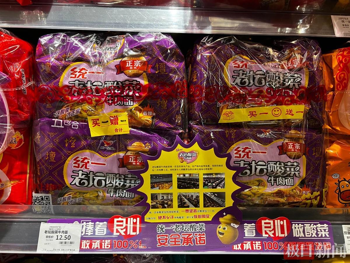 “之前被曝光后,就都下架了,现在买老坛酸菜牛肉面,只有统一的。”中百超市东亭路店工作人员表示。