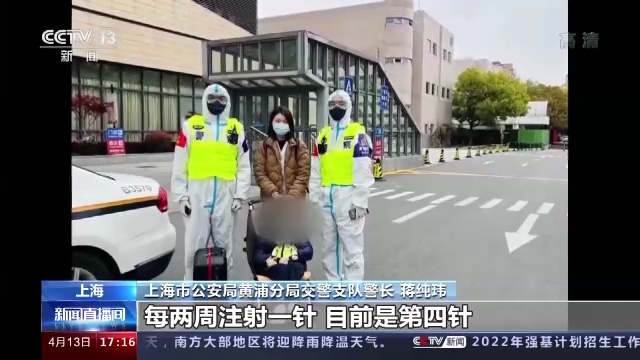 上海市公安局黄浦分局交警支队警长 蒋纯玮:每两周注射一针,目前是第四针。如果这针不打,前面的针就全部浪费了。