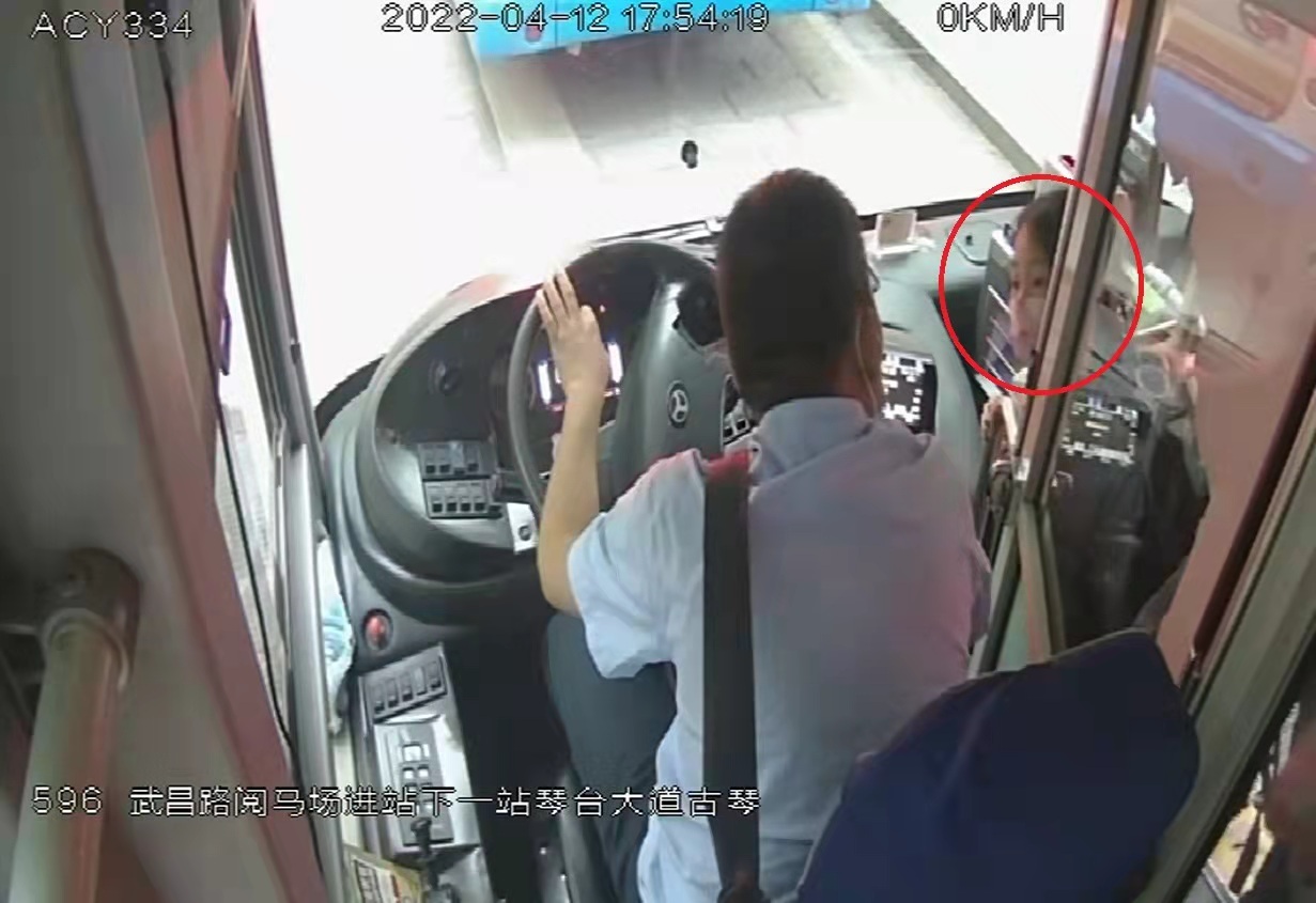 4月12日17时35分,596路司机高辉驾车由卓刀泉南路省肿瘤医院开往龙阳湖东路陶家岭路。17时54分,车行驶至武珞路阅马场站点,一位女孩走到了驾驶室旁,问道:“这是59路吗?”