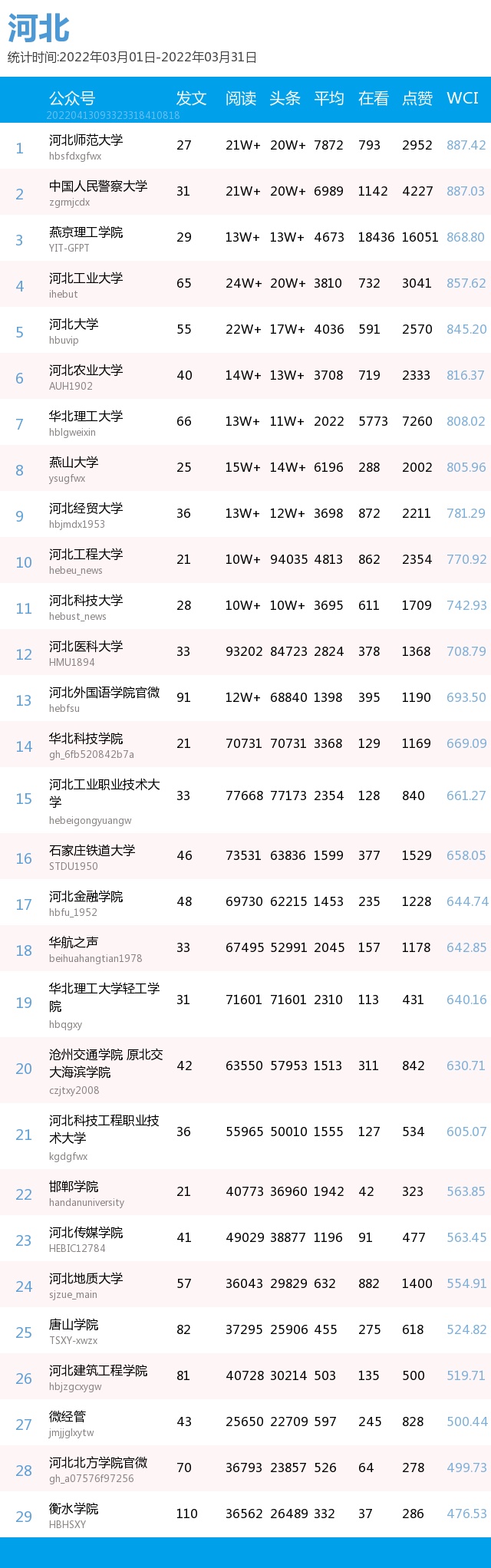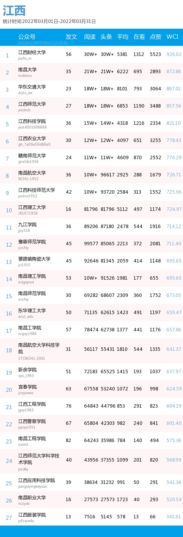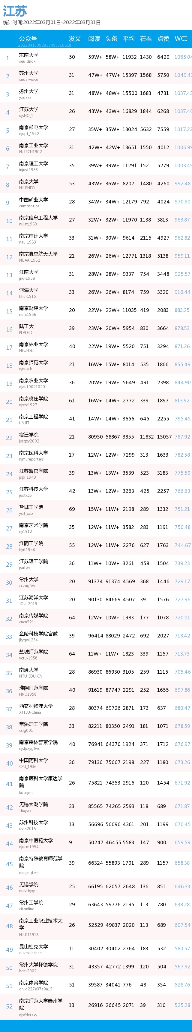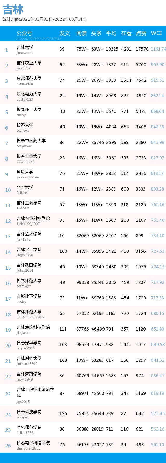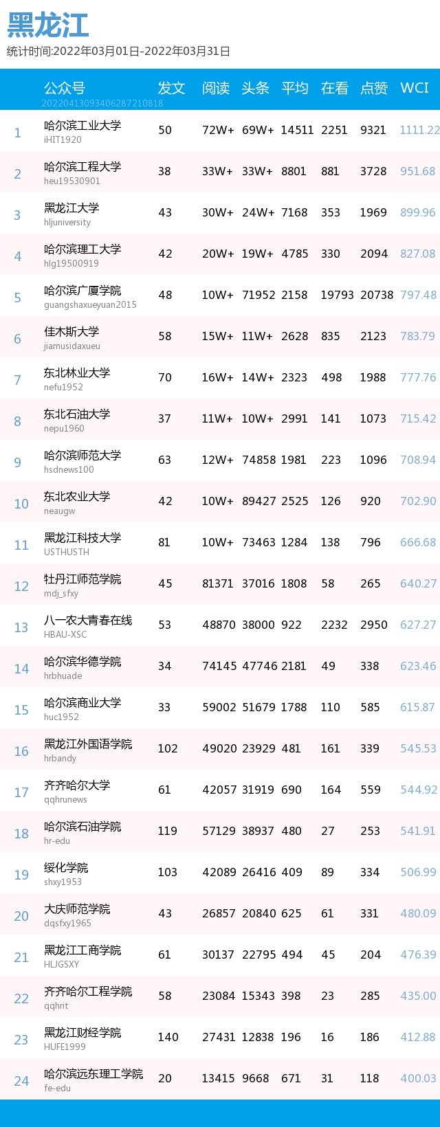 注意:因未报名参榜或本期统计时间内无内容更新,故部分地区无高校公号上榜。