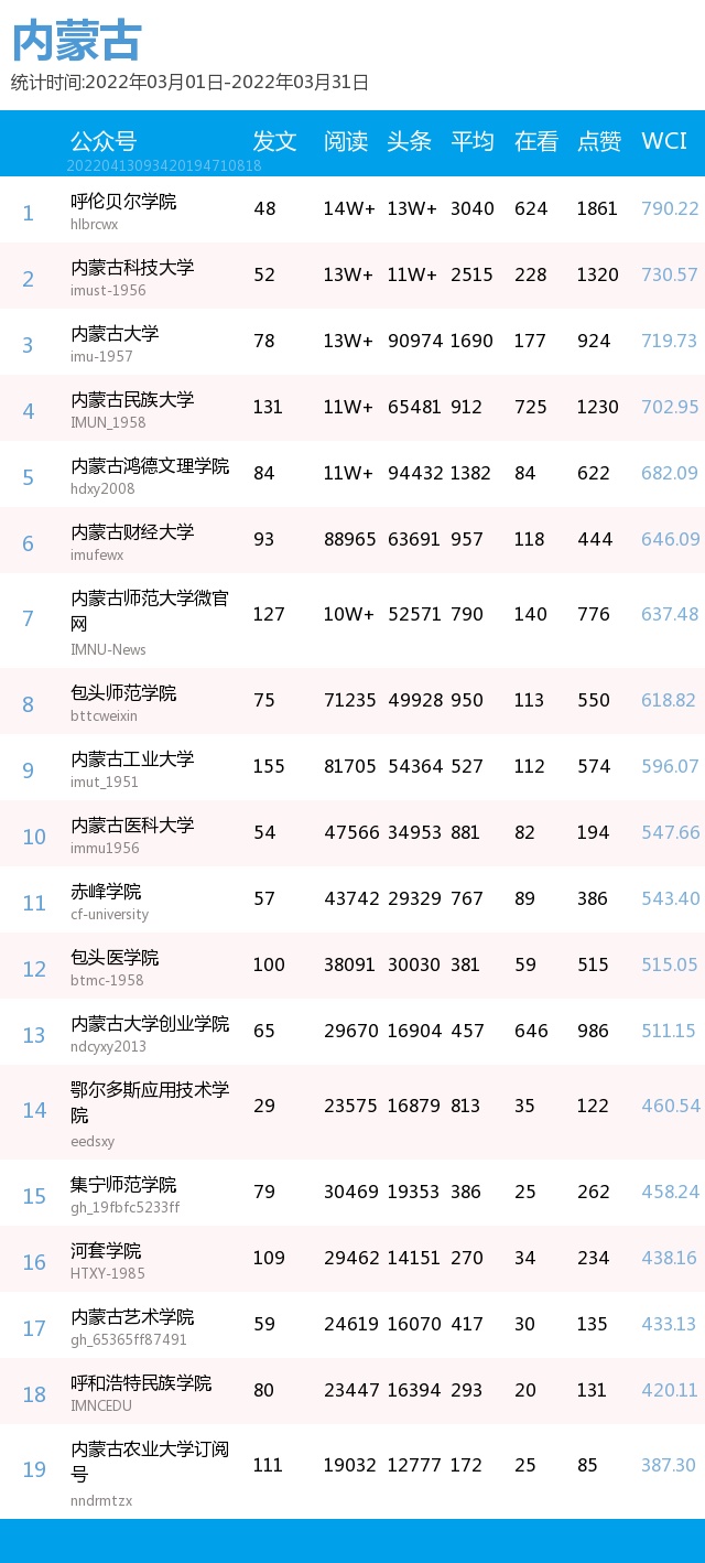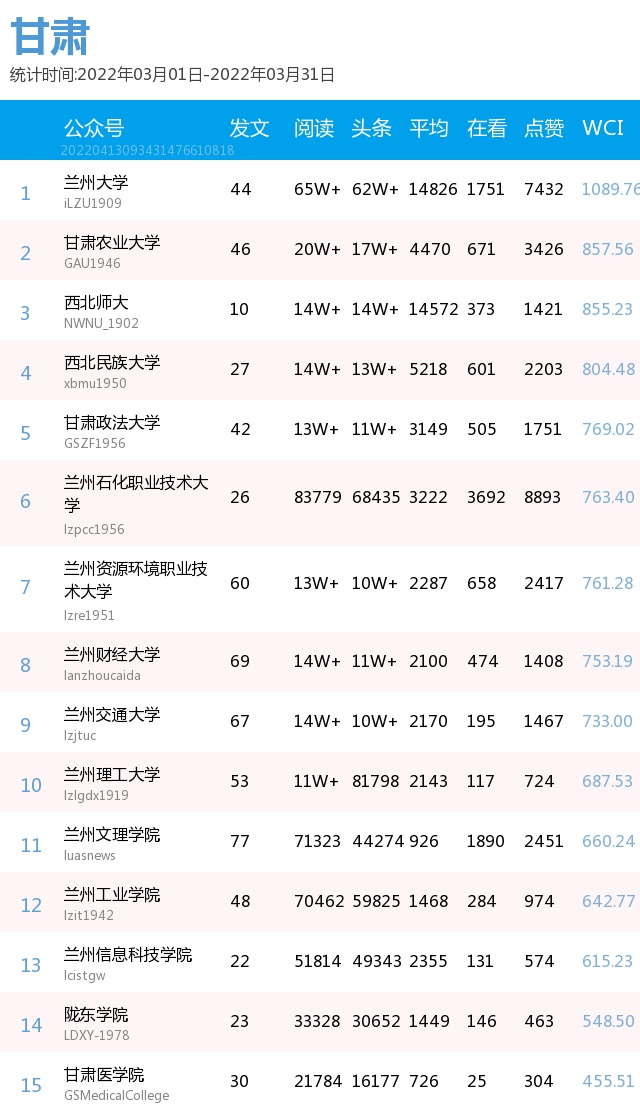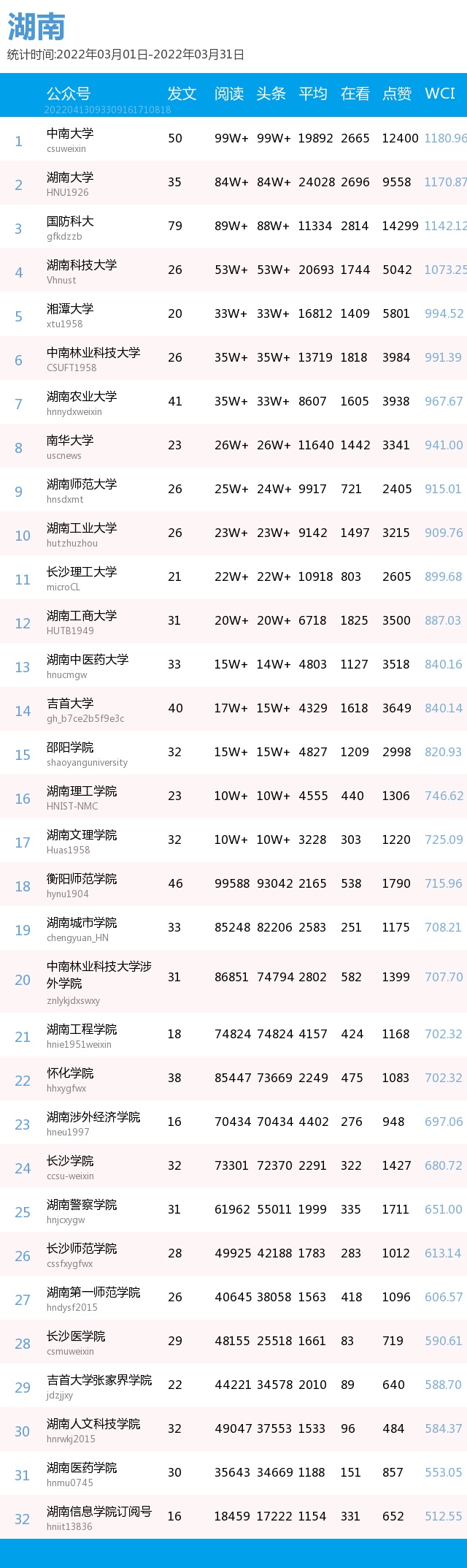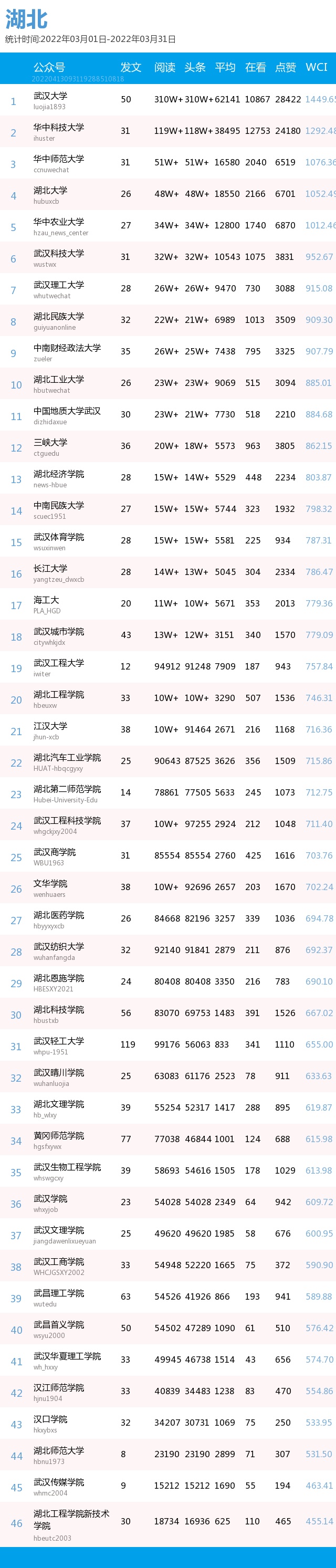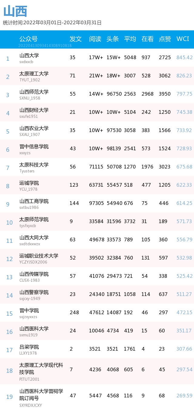 注意:因未报名参榜或本期统计时间内无内容更新,故部分地区无高校公号上榜。