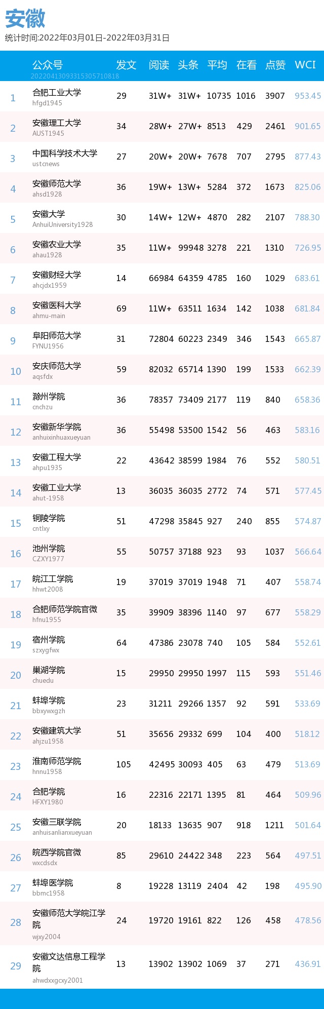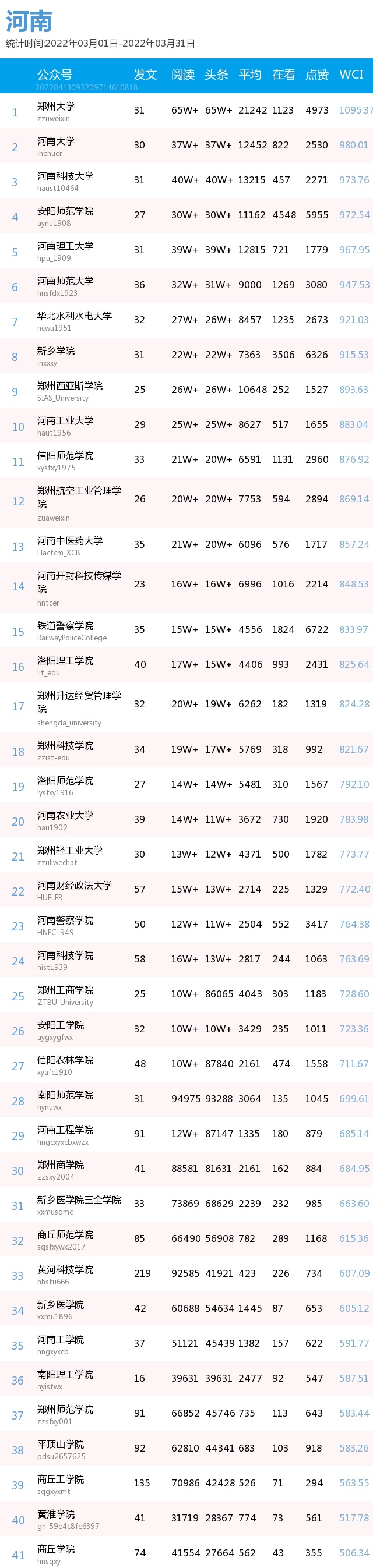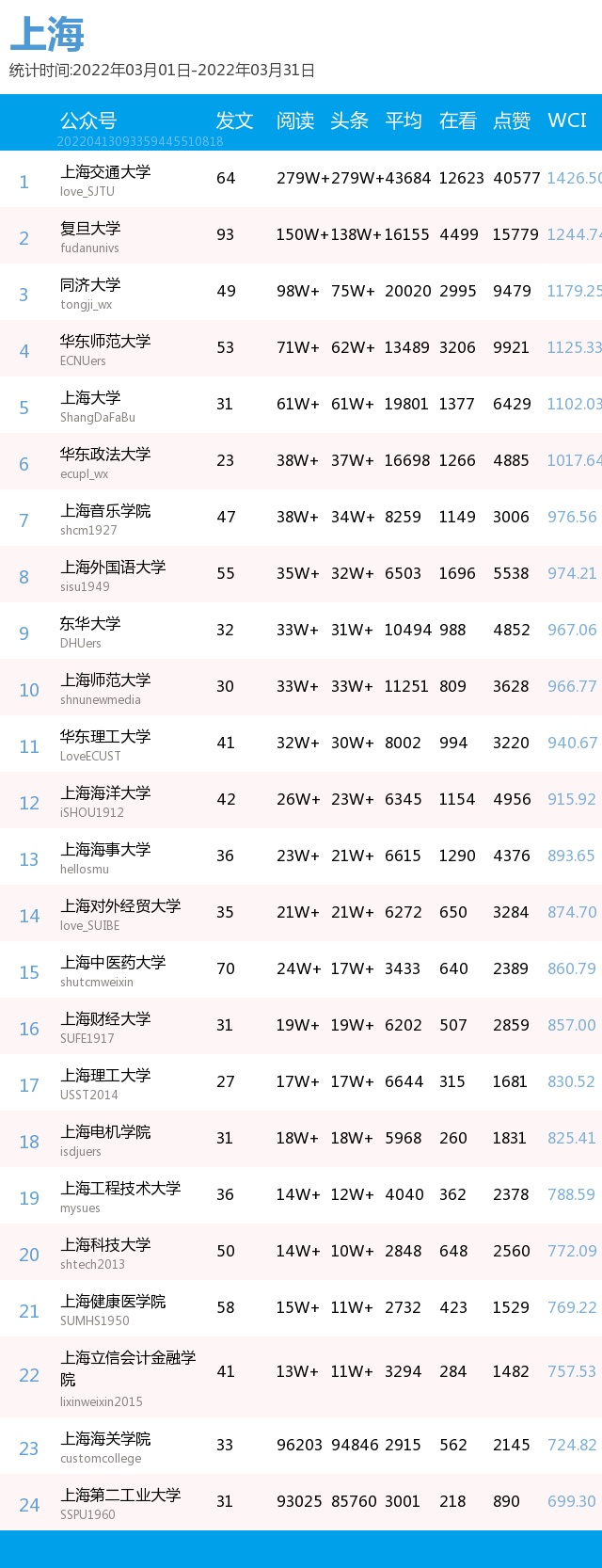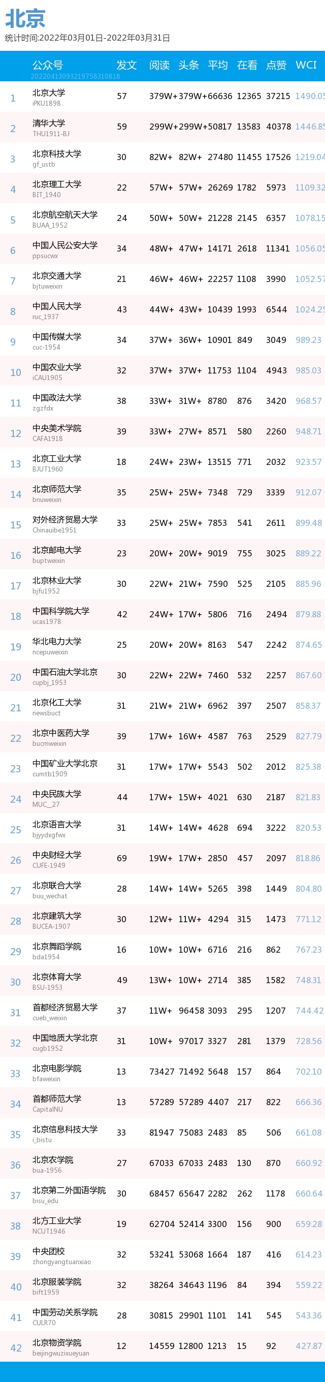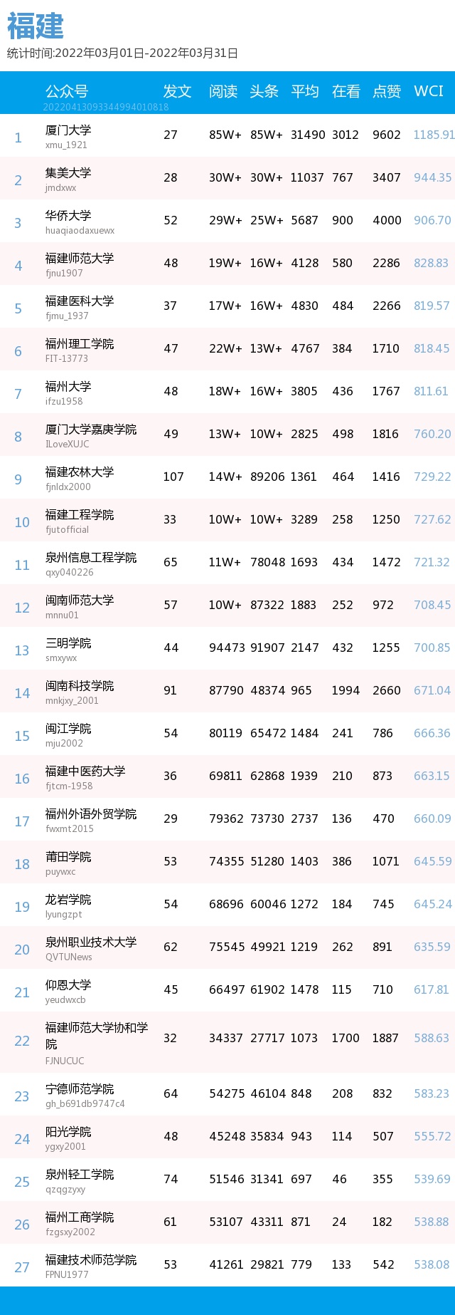注意:因未报名参榜或本期统计时间内无内容更新,故部分地区无高校公号上榜。