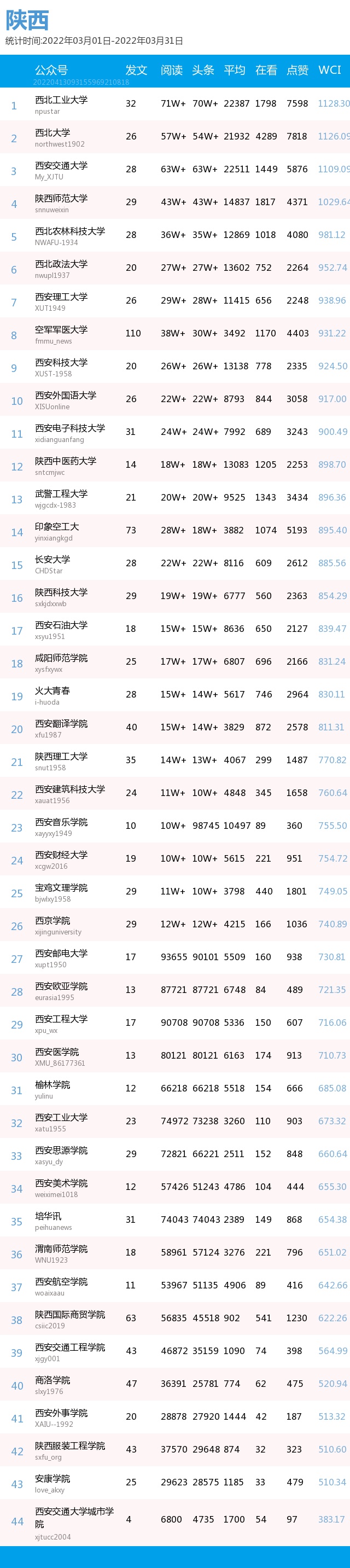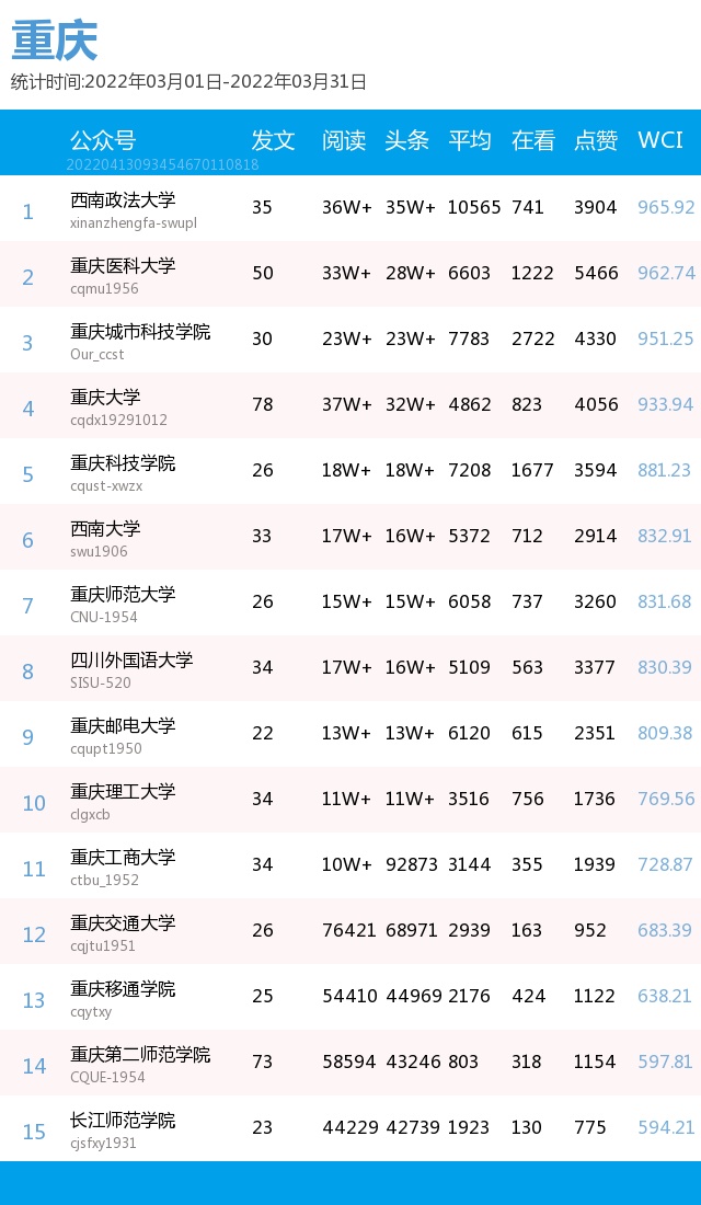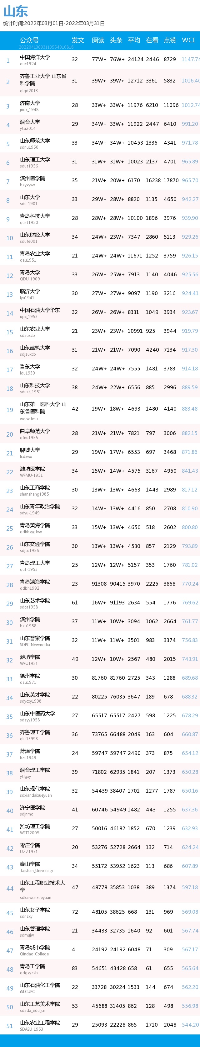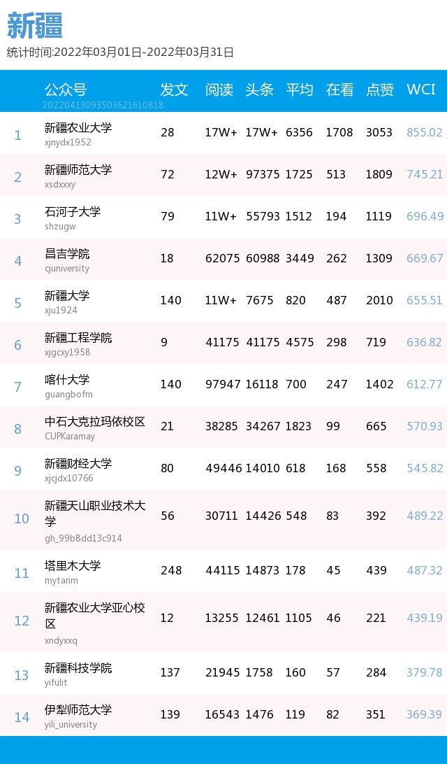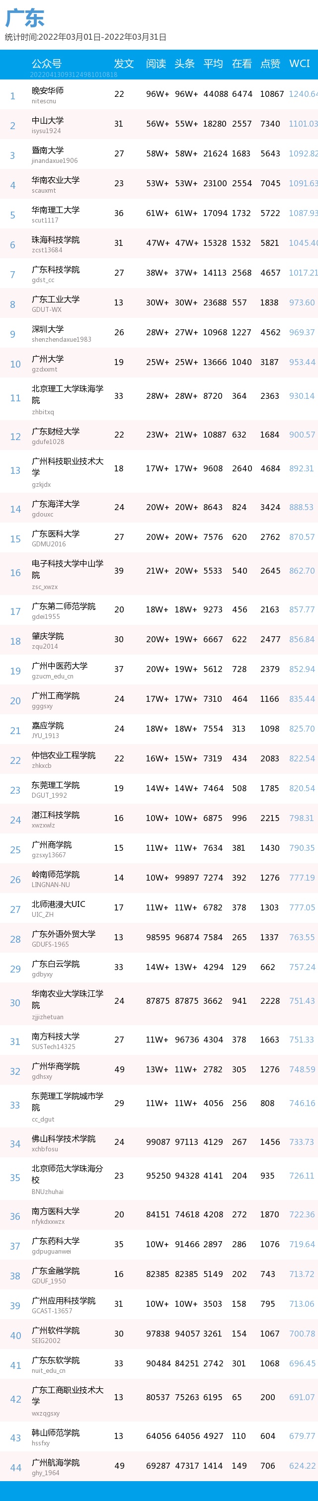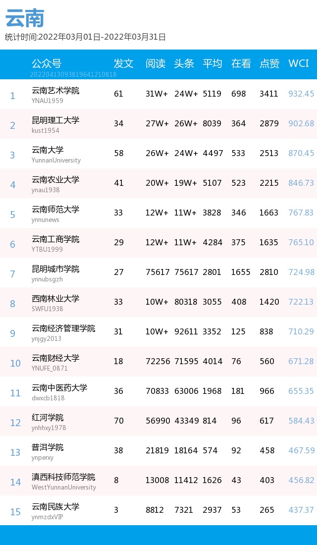 注意:因未报名参榜或本期统计时间内无内容更新,故部分地区无高校公号上榜。