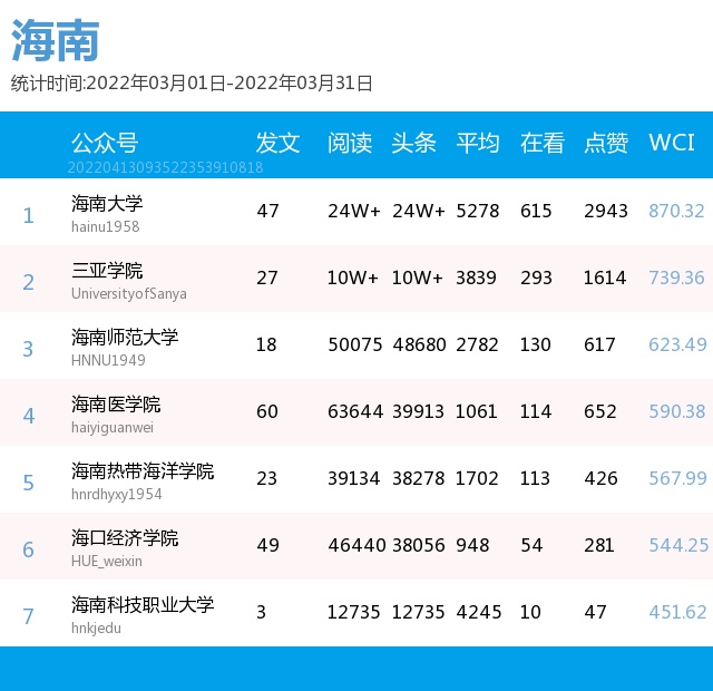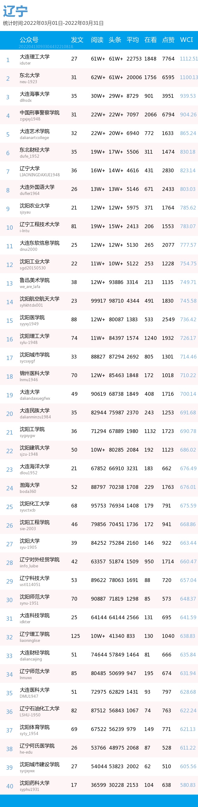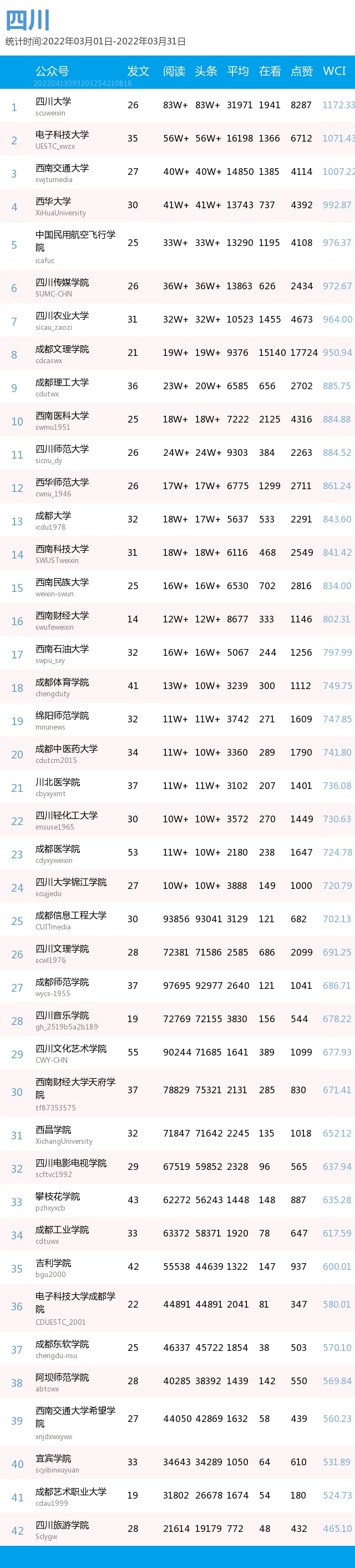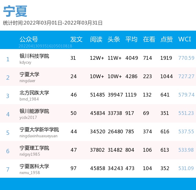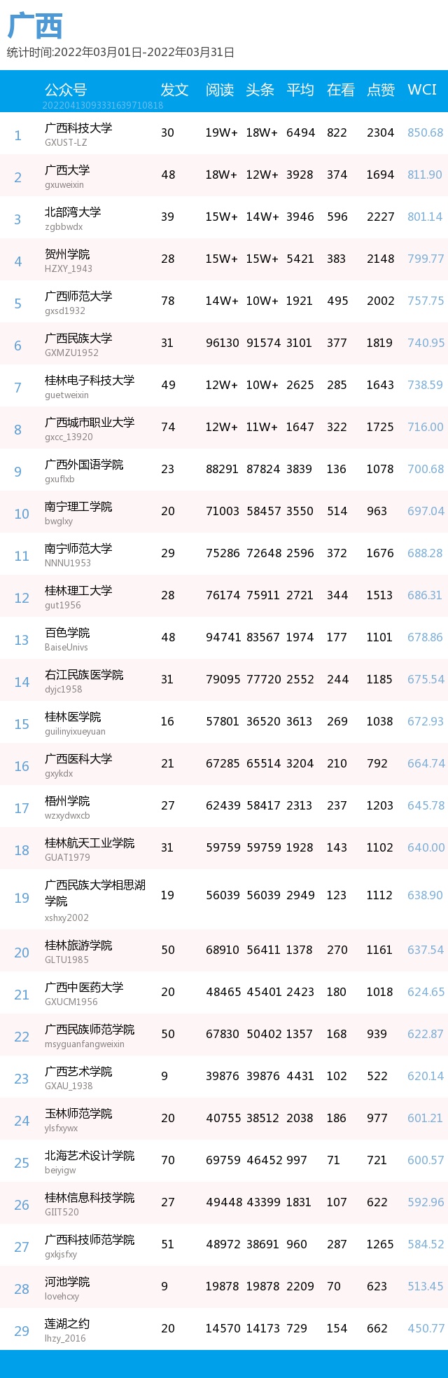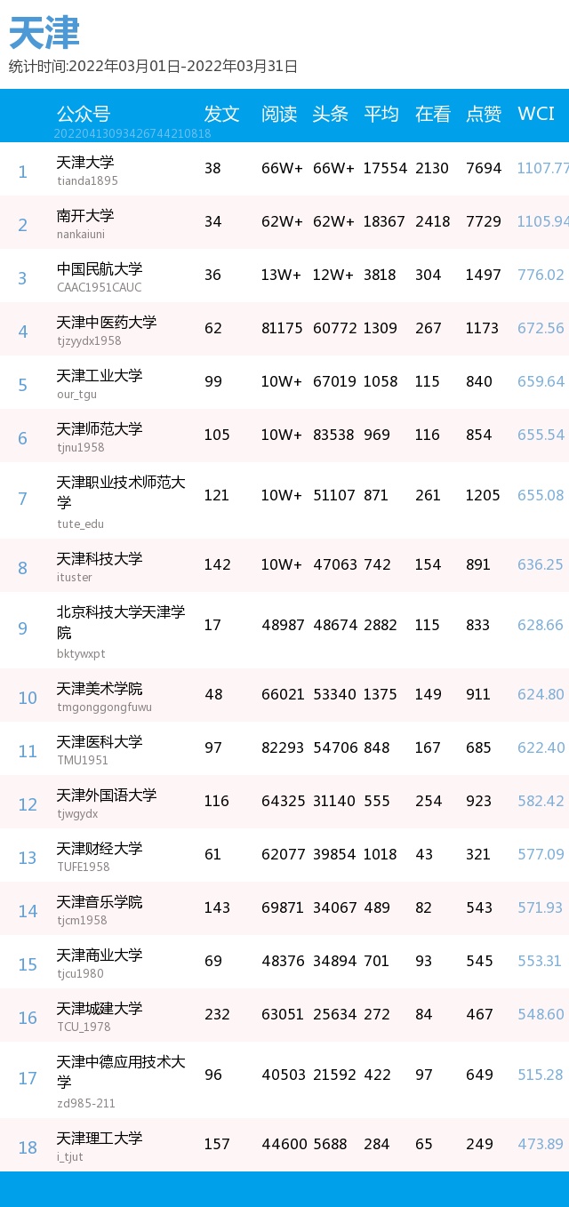 注意:因未报名参榜或本期统计时间内无内容更新,故部分地区无高校公号上榜。